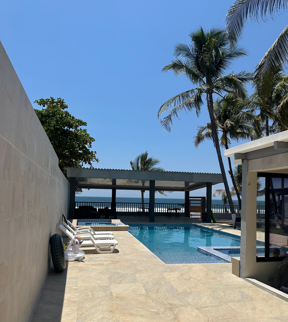 Unas vacaciones geniales, casa con todos los servicios básicos (incluye wifi), sala, comedor, cocina, barra desayunador, área de descanso, piscina privada, zona de área verde, parqueo y lo más importante es el asador con parrilla tipo horno al aire libre, en medio de 6 palmeras de coco que da la sensación de estar en un paraíso tropical, la casa de playa se encuentra en un complejo residencial con vigilancia constante 24/7 y acceso al mar a 5 min.