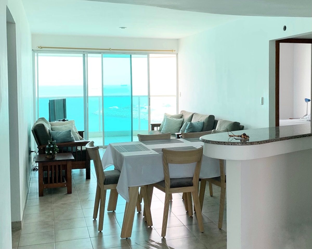Beautiful spacious apartment in front of the beach. Wonderful ocean view. Located at Malecon Principal of Salinas, close to bars and restaurants. You can enjoy the sea with multiple activities such as swim, waverunner, boat ride, water parks and water sports. Reservations over 28 years old... PARTIES PROHIBITED