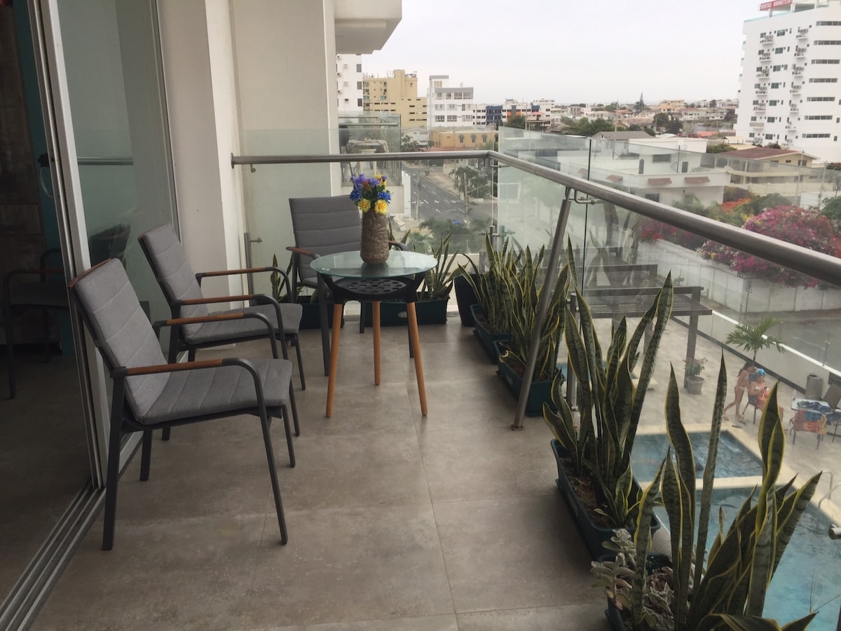 Luxury Suite on the 9th floor with ocean views in Punta Centinela, ideal for all ages. Enjoy an Unforgettable Experience with first-class amenities: 24-hour security, gym, BBQ area, swimming pools, parking jacuzzi, elevator, A/C, hot water, Wifi, DirecTV, queen size bed, sofa bed, kitchen equipped with basic utensils . As a special touch, exclusive access to the Club and the Private Beach of Punta Centinela. Book now and Live the Paradise Experience by the sea!