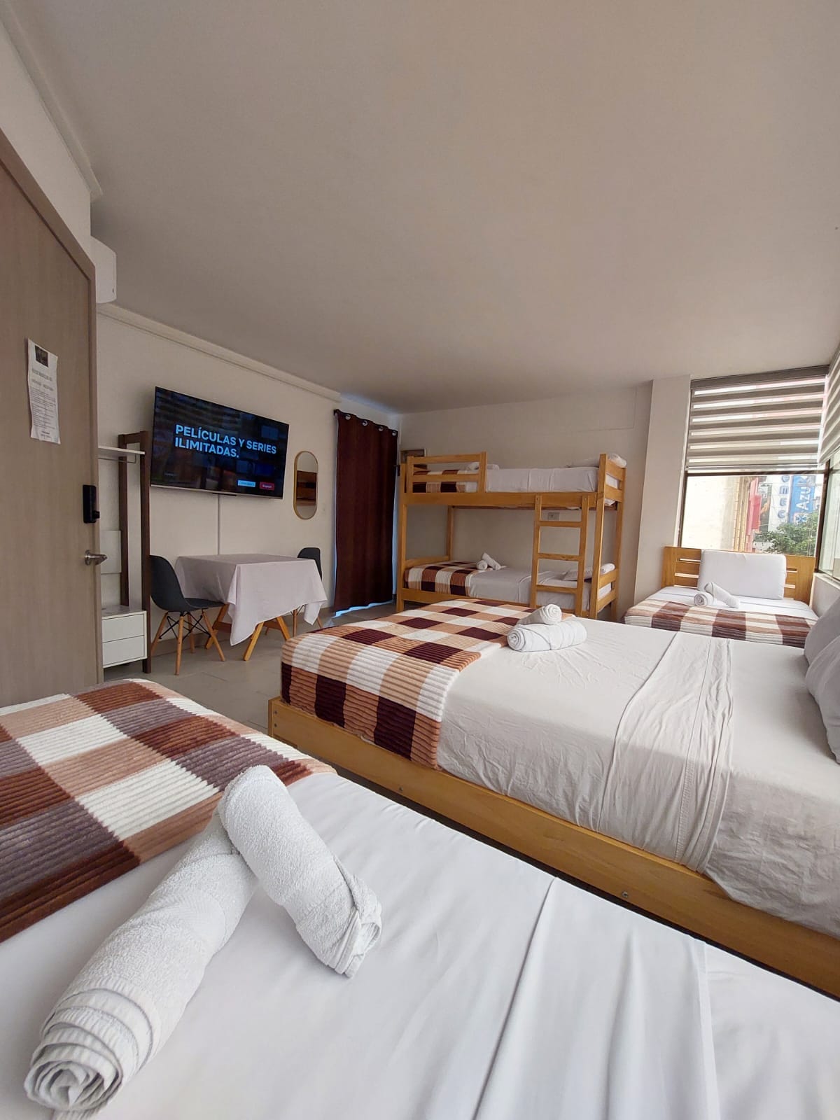 Enjoy a luxurious beachfront stay for up to 4 guests at Hotel Colón Miramar Salinas Beachfront. This modern suite features 2 double beds, private bathroom, A/C, Smart TV, Wi-Fi, coffee bar, and city views. Guests enjoy full access to pools, gym, and elegant social areas. Located steps from the beach and boardwalk with 24/7 security, it’s perfect for couples, families, or friends seeking comfort and an unforgettable coastal escape.