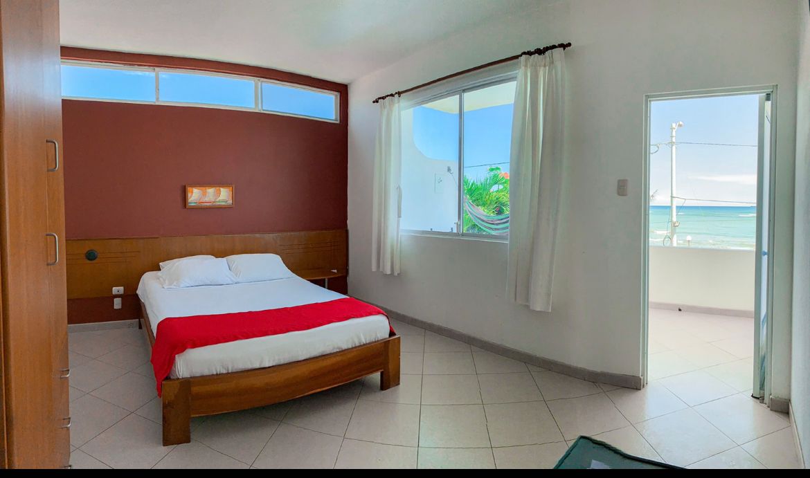 Habitación matrimonial, con baño privado y ducha de agua caliente. Con una espectacular vista al mar y un balcón de ensueño. Tiene A/C, acabados en piedra, wifi y más. Hay áreas comunes como una playa exclusiva, piscina de línea infinita y una galería náutica. El hotel se encuentra en una de las zonas más bellas de ballenita al pie del mar.