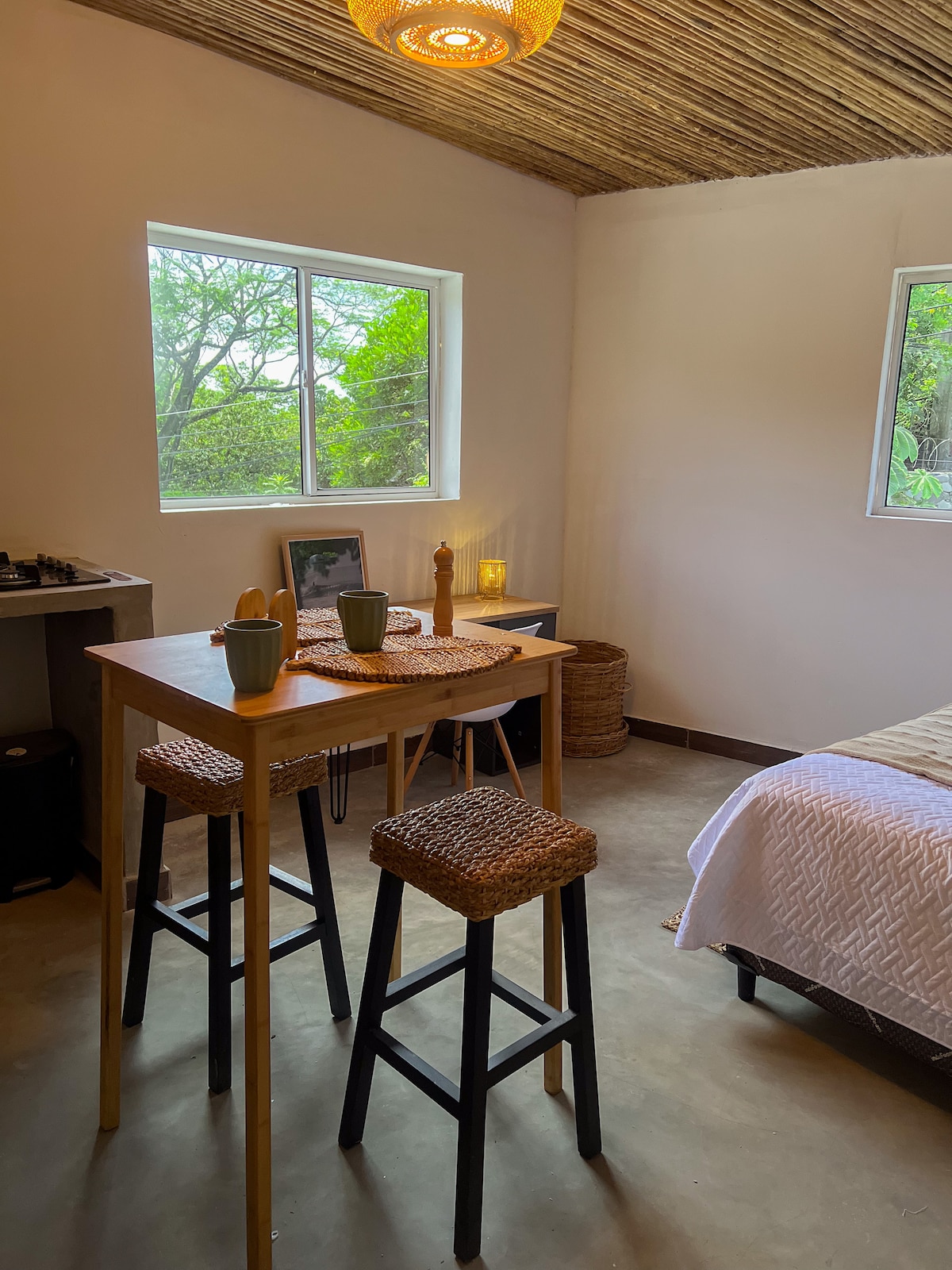 Enjoy sweeping ocean views and endless waves. Located in Playa Sunzal — home to surfing competitions, great food, beautiful people, and everything tranquilo. Just around the bend is El Tunco, a vibrant town known for its incredible sunsets and lively nightlife. Only minutes drive, El Zonte (aka Bitcoin beach) offers stunning beaches, surf, yoga, and salsa. Your private loft sits just below a house with its own entrance — the perfect spot to relax, unwind, and finally breathe again.