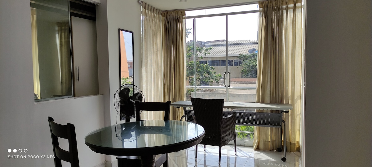 Disfruta de una estadía cómoda y práctica en este minidepartamento ubicado en un 1er piso a solo 2 cuadras del malecón de Huanchaco. Ideal para parejas, viajeros solos o nómadas digitales que buscan descansar cerca del mar. Cuenta con cocina equipada, comedor, sala y baño en el dormitorio principal. Su mayor atractivo: ¡una cómoda cama King Size para un descanso inigualable! Te esperamos.