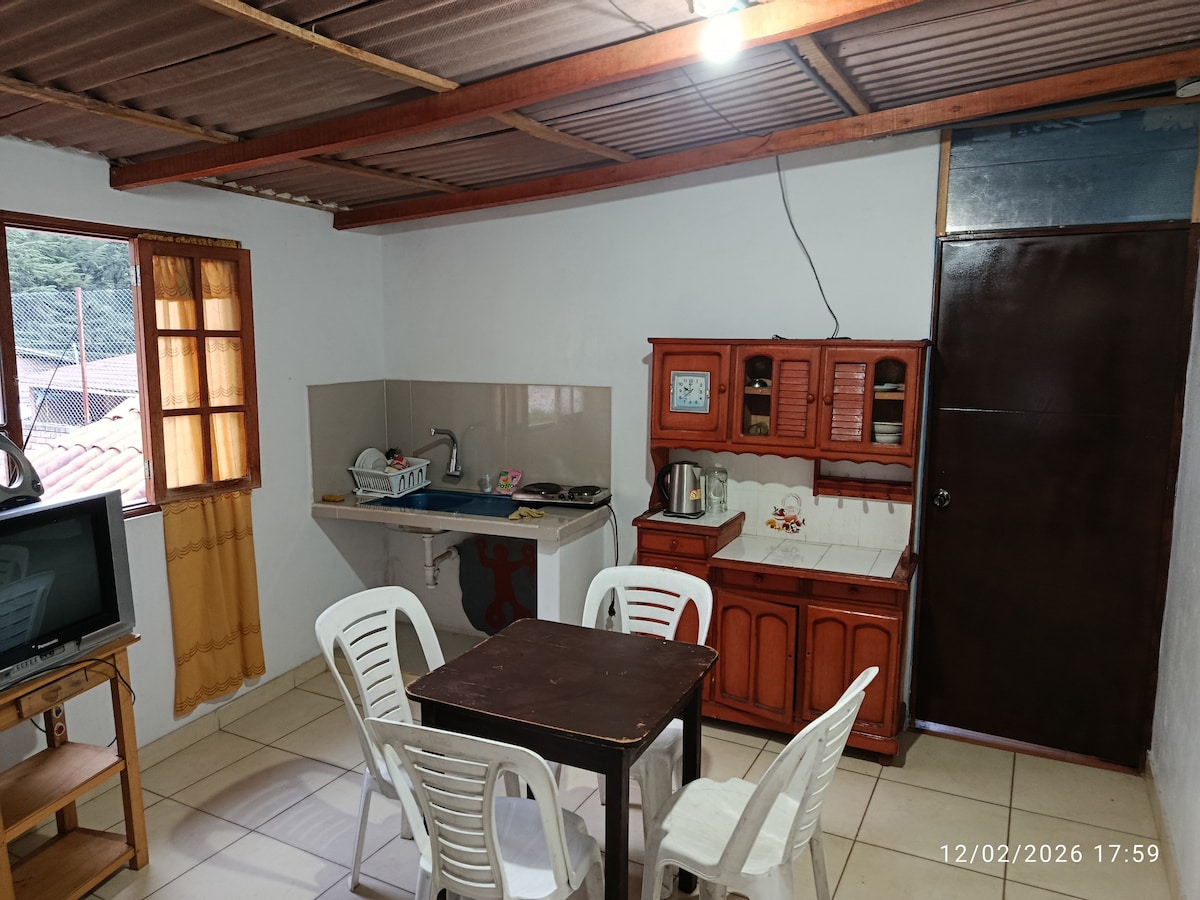 Mini cabaña acogedora – Escápate a la tranquilidad ¡Bienvenido(a) a tu refugio perfecto! Ideal para parejas, aventureros o viajeros solitarios que buscan descanso y conexión con la naturaleza. Ubicada en un entorno tranquilo, la cabaña ofrece: -Cama cómoda para un buen descanso -Ambiente cálido y privado -Vista natural y espacio al aire libre ¡Ideal para desconectarte, respirar y disfrutar del momento. Crea recuerdos inolvidables en este alojamiento único y familiar.