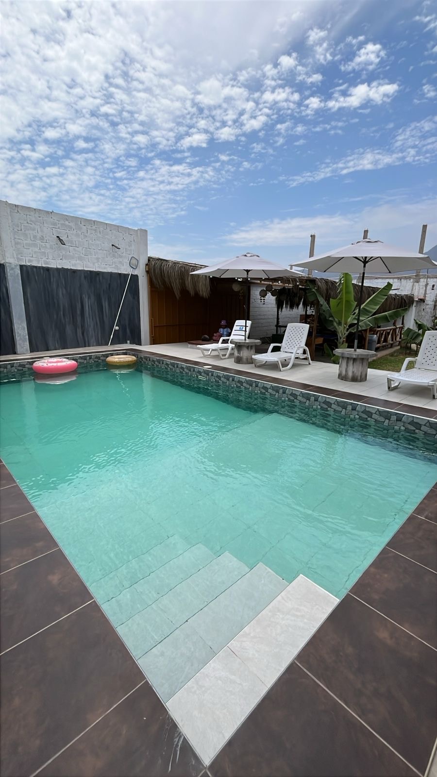 Bienvenidos a la Casa de campo "Lenning & Loly, en Moche-Trujillo, un ambiente rodeado de áreas verdes, piscina, cerca del mar, a 8 min. está el balneario “Las Delicias”, a 10 min. de las “Huacas del Sol y la Luna” y a 25 min. Balneario “Huanchaco”. Hay 5 hab. con cama matrimonial, 1 con cama adic. capacidad 11 huéspedes, baños, sala, comedor, cocina, gimnasio, pérgola, lavandería, huerto orgánico, horno de barro, parrilla, estacionamiento privado, wifi, *el Sauna (costo extra previo aviso)