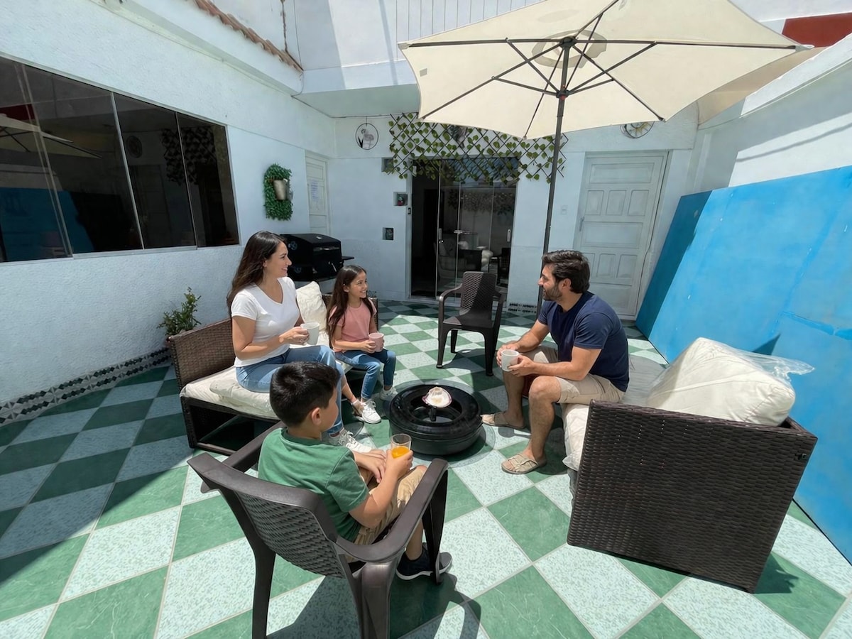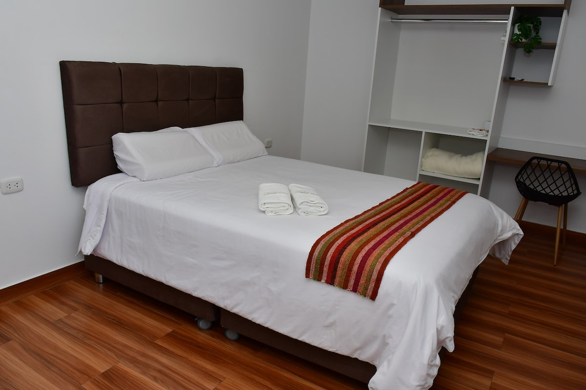 Vive una experiencia inolvidable y sumérgete en la tranquilidad y comodidad de nuestro céntrico alojamiento. Perfecto para disfrutar con familia o amigos, ofrece habitaciones acogedoras, cocina completamente equipada, sala y comedor con muebles nuevos y confortables, así como un baño completo con agua caliente, acceso a internet y entretenimiento con un Smart TV de 55”. Te ofrecemos una cochera privada. Ubicado en el segundo piso, nuestro espacio combina accesibilidad, tranquilidad y seguridad