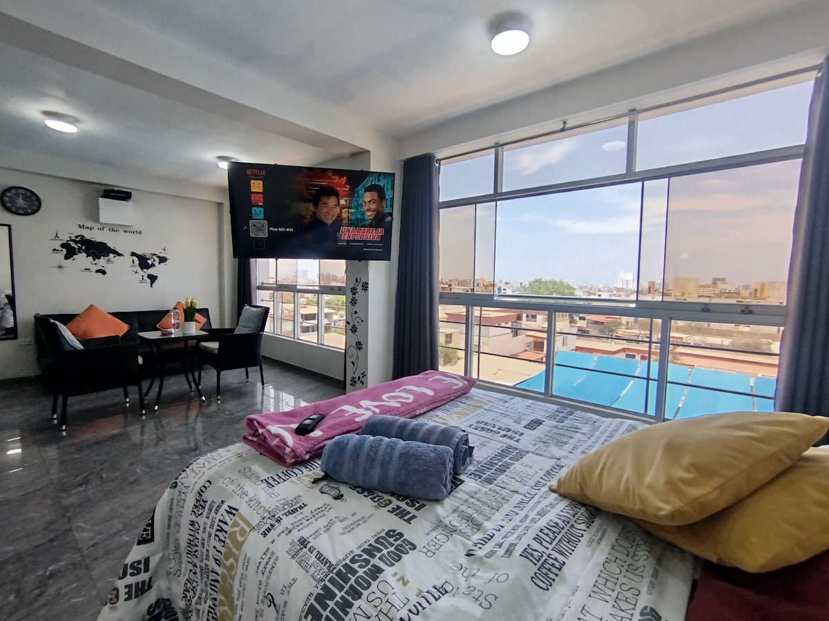 Two blocks from the beach. A Deluxe apartment with an amazing sunset view from the roof terrace. Located on the top floor of the building. It is in the Heart of Huanchaco and you will be close to everything ( surfing shops, restaurants, bakeries and bars). Distance from the apartment to Trujillo City Center its about 12 km /22 mins. And to 5km/ 10 min to the airport 6th floor (access by stairs only)