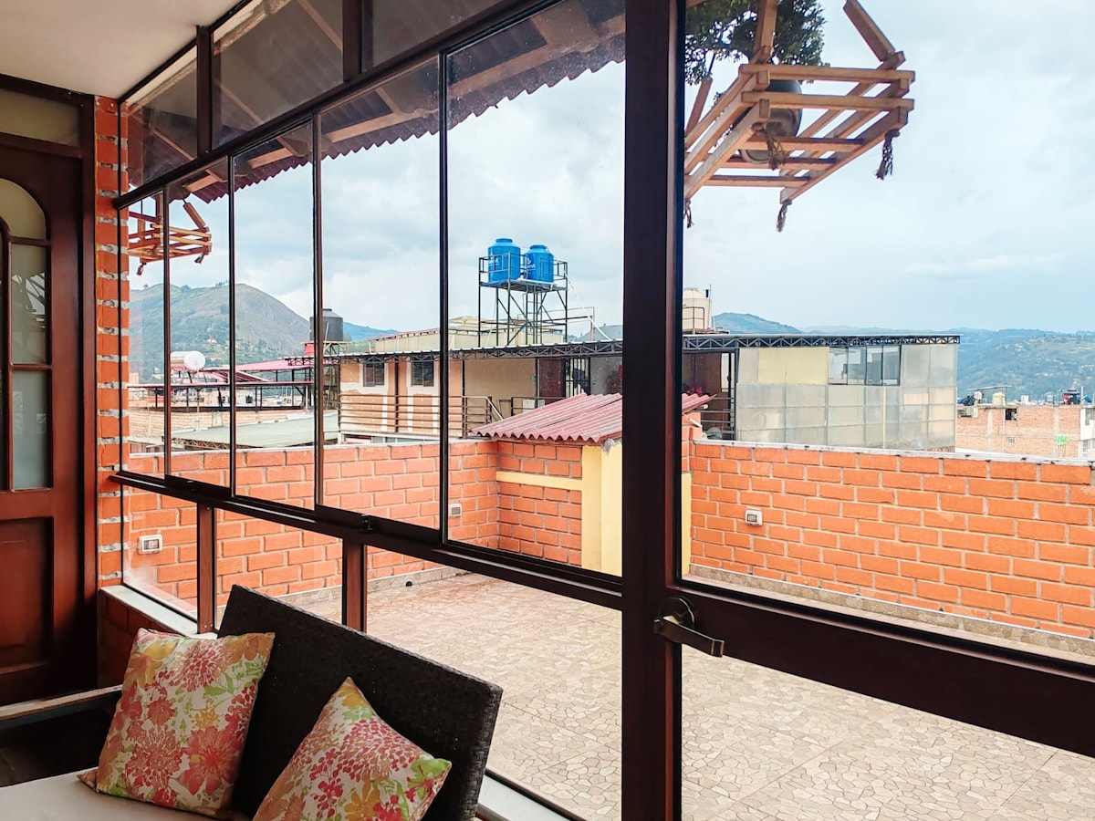 ENCONTRASTE EL LUGAR IDEAL en Cajamarca, barrio residencial, caminando a 10 min de la Plaza de Armas. LOFT en segundo nivel, 1 cama matrimonial + 1 camarote (ingresan hasta 4 personas) kitchenet, sala-comedor, WIFI, smart TV, baño completo externo PROPIO en primer nivel. Ingreso independiente en un lugar familiar, cálido, seguro y buenas vibras. Creemos en el turismo inclusivo y alternativo, estamos para ayudarte. Podemos explicarte la ciudad de la mejor manera para que disfrutes Cajamarca
