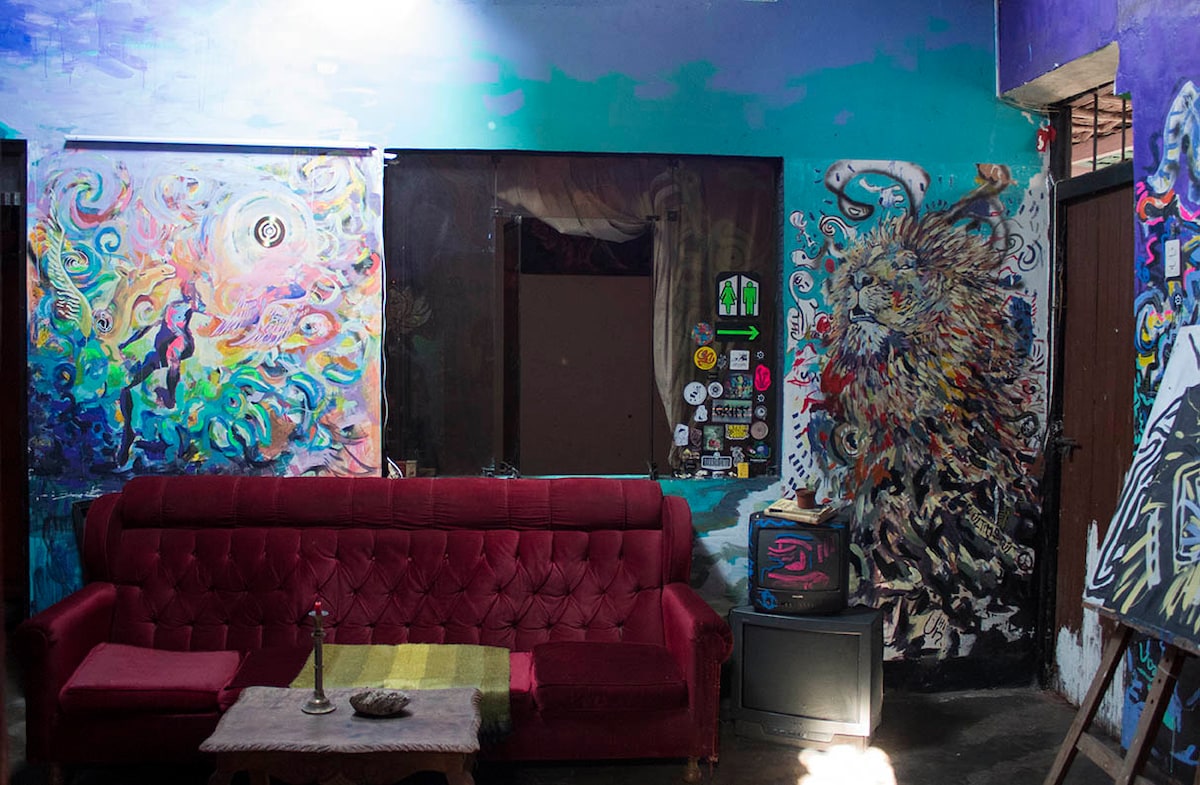 Casona ubicada en el centro de Trujillo a una cuadra de la plazuela el recreo, cuenta con amplios espacios distribuidos en una galeria de arte y biblioteca, un comedor, taller del artista, cocina, baño y habitación, la construcción es tipo casona y está intervenida artísticamente, cuenta con servicio wifi, ducha(fria),radio, cocina a gas, cama de dos plazas, estacionamiento, lavanderia muy cerca, somos un espacio cultural y será un gusto orientarte culturalmente sobre nuestra ciudad.