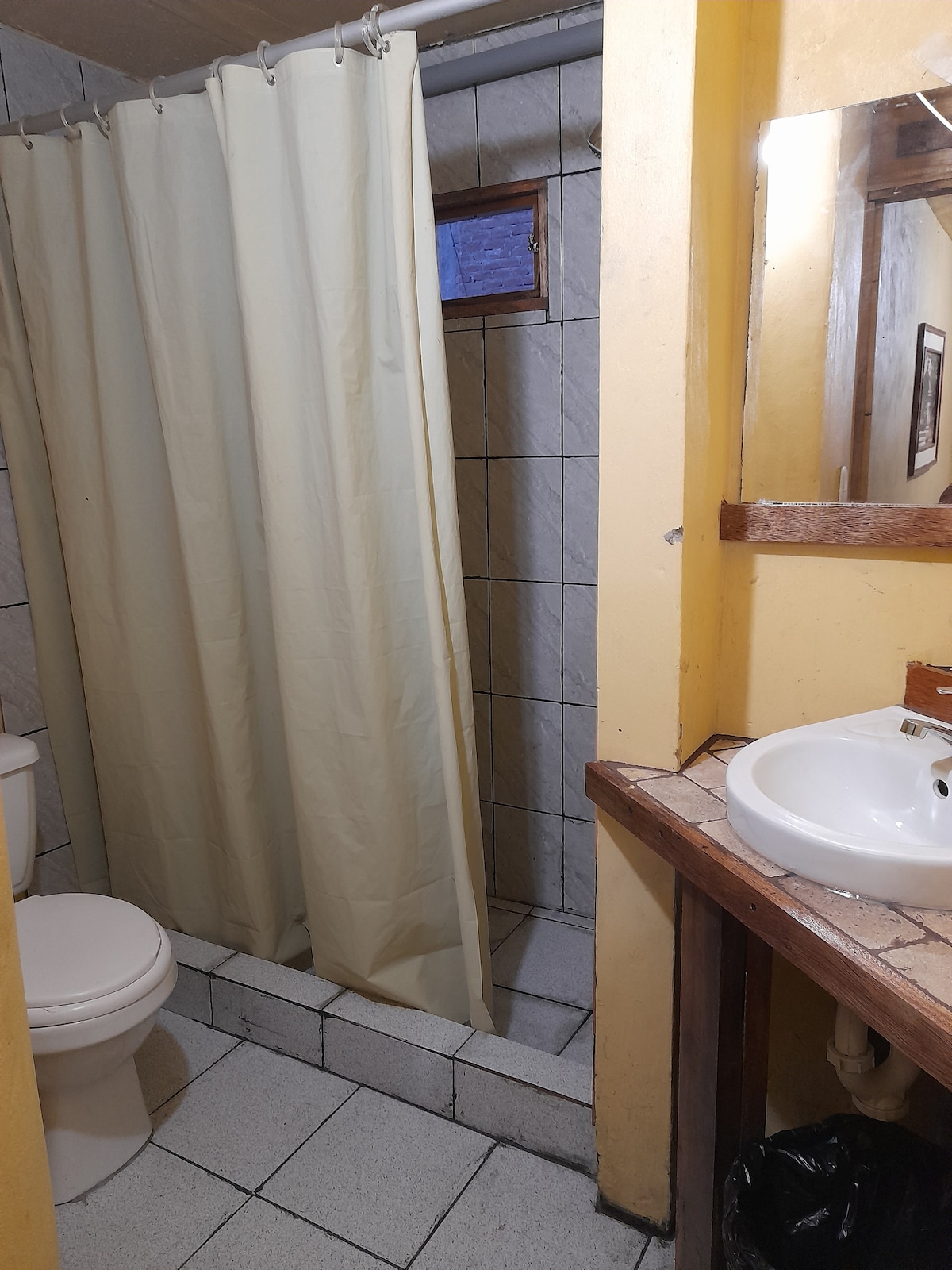 Beachfront hostal & cafe. This room has community kitchen & large rooftop terraces, & more. it is a 2nd flr private room with private bathroom and interior view.