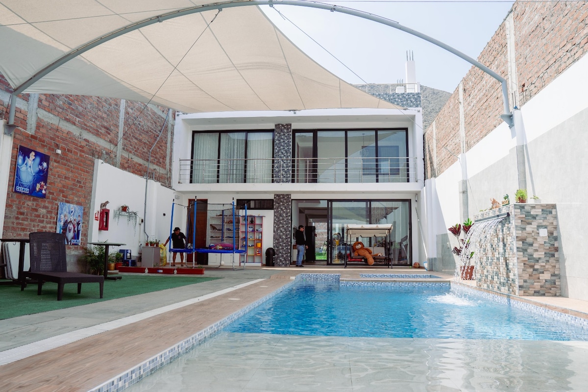 Diviértete con toda la familia y amigos, en este alojamiento con estilo moderno, con piscina para grandes y niños, zona de parrillas, buena vista de paisajes, cerca al mercado de Simbal, caminata a rio, silencio total, aire saludable, sol todo el año, ambientes para todos, karaoke, gimnasio, y mucho mas...