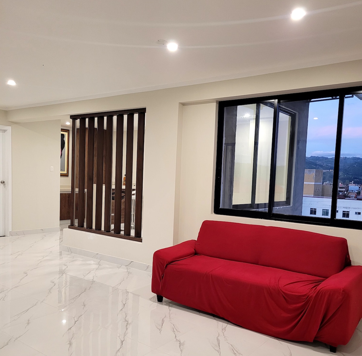Encantados de recibirlos en este departamento con una vista panorámica privelegiada; exclusivo y céntrico que cuenta con todos los servicios necesarios para tener una increíble estadía, es de estreno y completamente amoblado. El departamento se encuentra en el corazón de una de las zonas más exclusivas de Trujillo. Ubicado convenientemente en Urb. California, en todo el parque grande de California. Se encuentra a 5 minutos del centro de la ciudad.