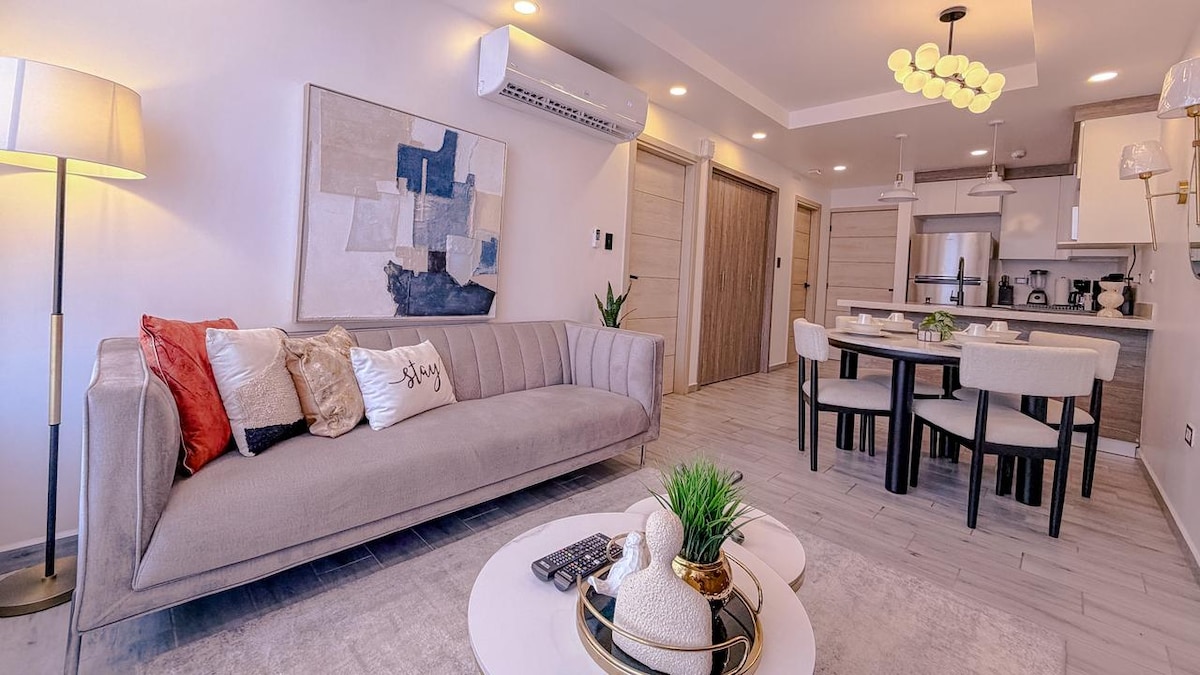 Relájate en este espacio tan tranquilo y elegante ubicado en una zona cercana al mall y restaurantes con todas las amenidades como Gimnasio, Piscina, área de barbacoa, mesa de billar Etc