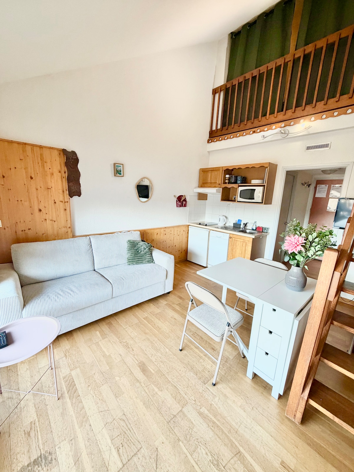 Amusez-vous avec toute la famille dans ce logement chic, calme et très lumineux . Au 1er étage avec ascenseur, la vue sur le village et les montagnes est superbe . Très ensoleillé Sud/Est. Le salon et la chambre avec chacun de très grandes baies donnant sur une grande terrasse bois avec table et chaises ou on peut manger nombreux C'est aussi un espace de jeux idéal pour les enfants. De la , vous surplombez la belle piscine couverte de la résidence et vous pouvez même voir nager vos enfants ...