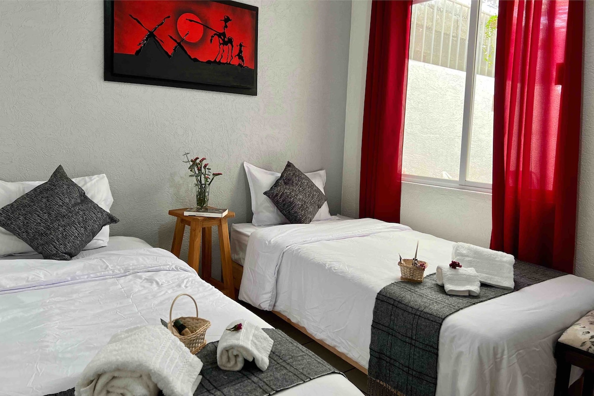 Hemos preparado este espacio cómodo y acogedor, ya sea para un viaje de negocios, trabajo, paseo familiar o con amigos. Centros comerciales a 5 min. Tequisquiapan, Aeropuerto, los mejores viñedos y balnearios con aguas termales cercanos. Fraccionamiento con vigilancia y espacios recreativos. Entretenimiento: WiFi, Alexa, Netflix, Disney+, Star+, HBO Max, Amazon Prime, Mercado Play, Vix, Deezer, Spotify y más...