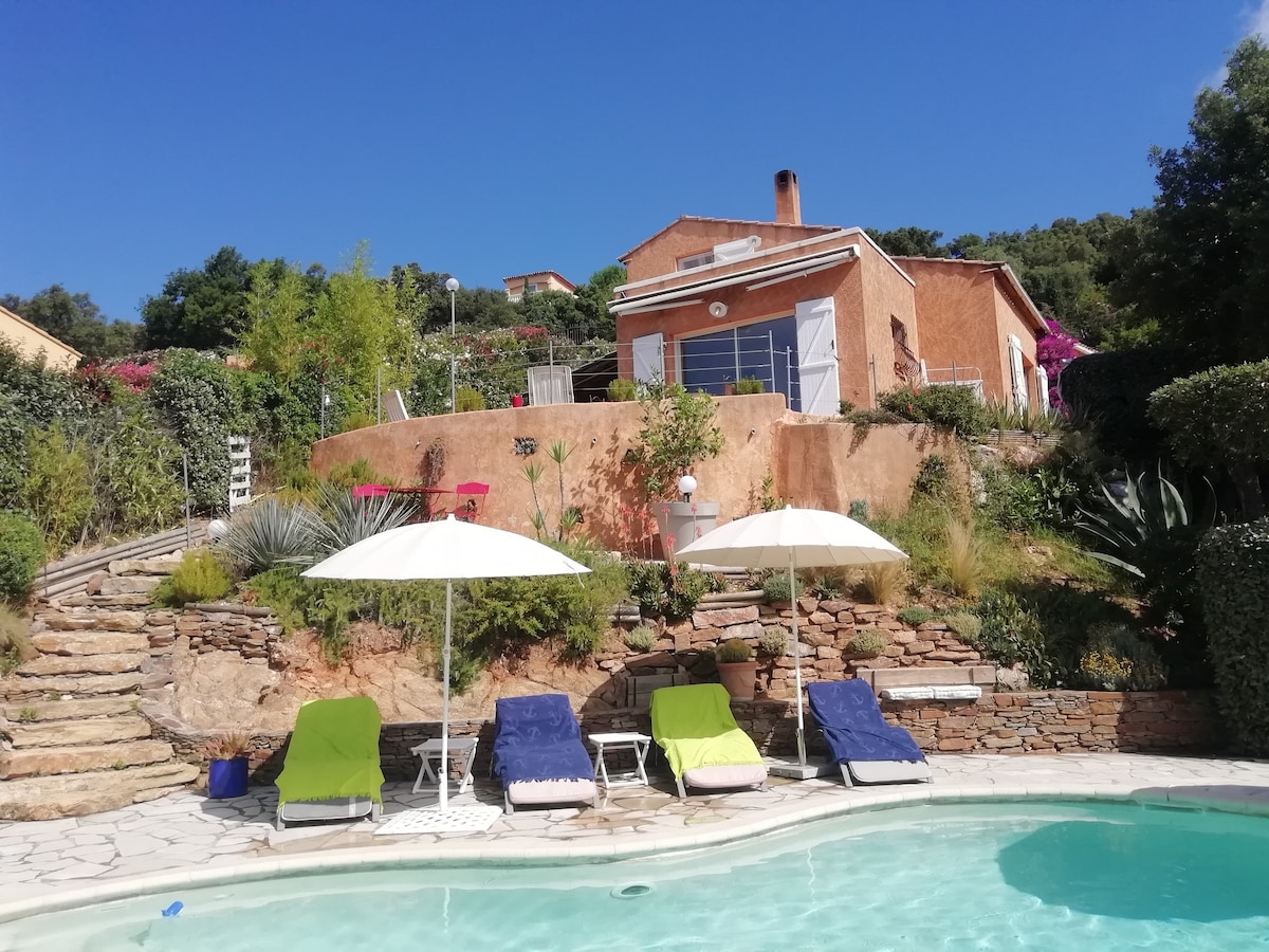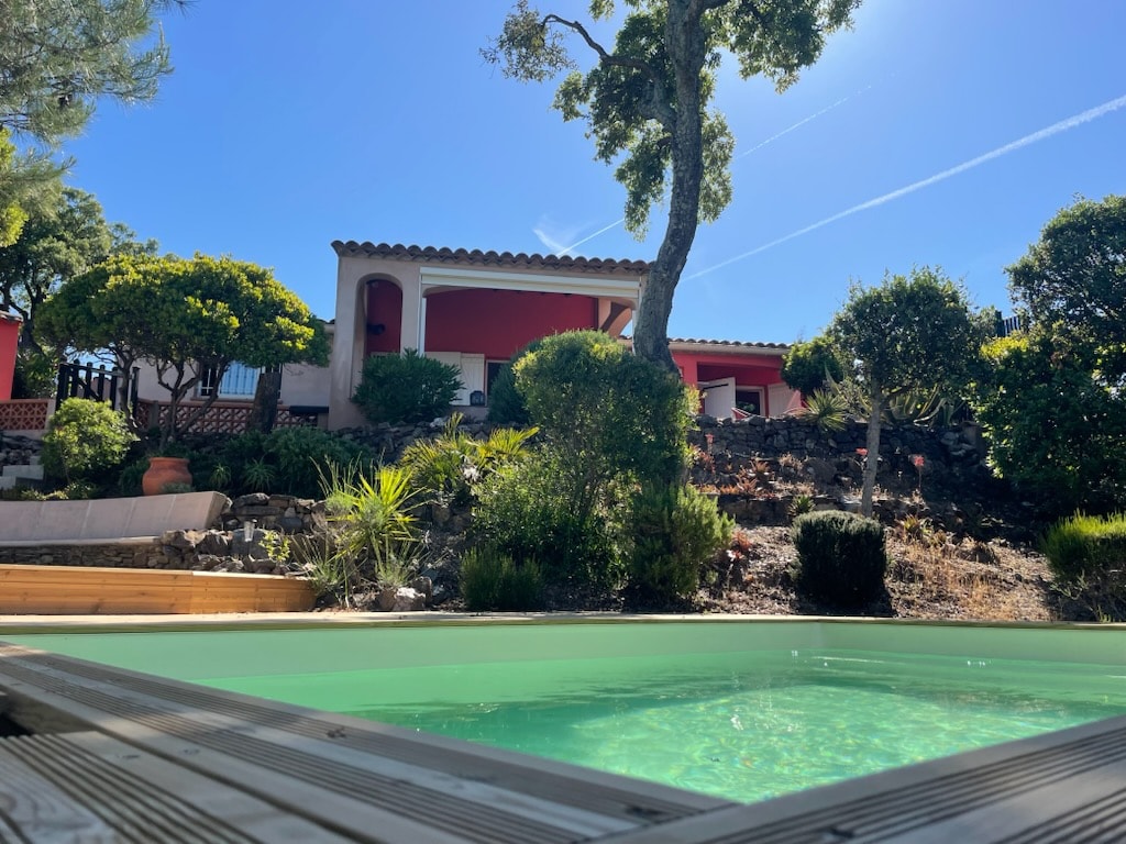 Charmante maison de vacances entièrement rénovée, parfaite pour un séjour relaxant en famille ou entre amis. Idéalement située à seulement 1,5 km d'une des plus belles plage de la cote (plage de l'Almanarre) cette maison peut accueillir confortablement jusqu'à 4 personnes. Cette maison d'environ 80m2 sur deux étages vous offre tout le confort nécessaire à votre séjour : cuisine équipée, climatisation, chambres confortables. Détendez-vous dans la piscine pouvant être chauffée toute l'année.