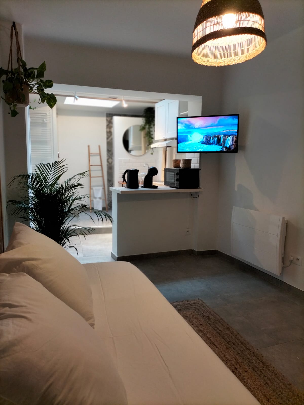Charmant et chaleureux, ce petit logement situé au coeur de la ville de mons (à deux pas de la grand place) saura prendre soin de vous durant votre séjour. Celui-ci se trouve au rez-de-chaussée d'un bâtiment composé de trois logements. Il dispose d'un lit king size (180/200). Vous y retrouverez tout le confort (dolce gusto, bouilloire électrique, micro-ondes/grill 2 en 1, taque électrique à induction, wifi, stick TV Android) la salle de bain est composé d'une douche, d'un lavabo et du WC.