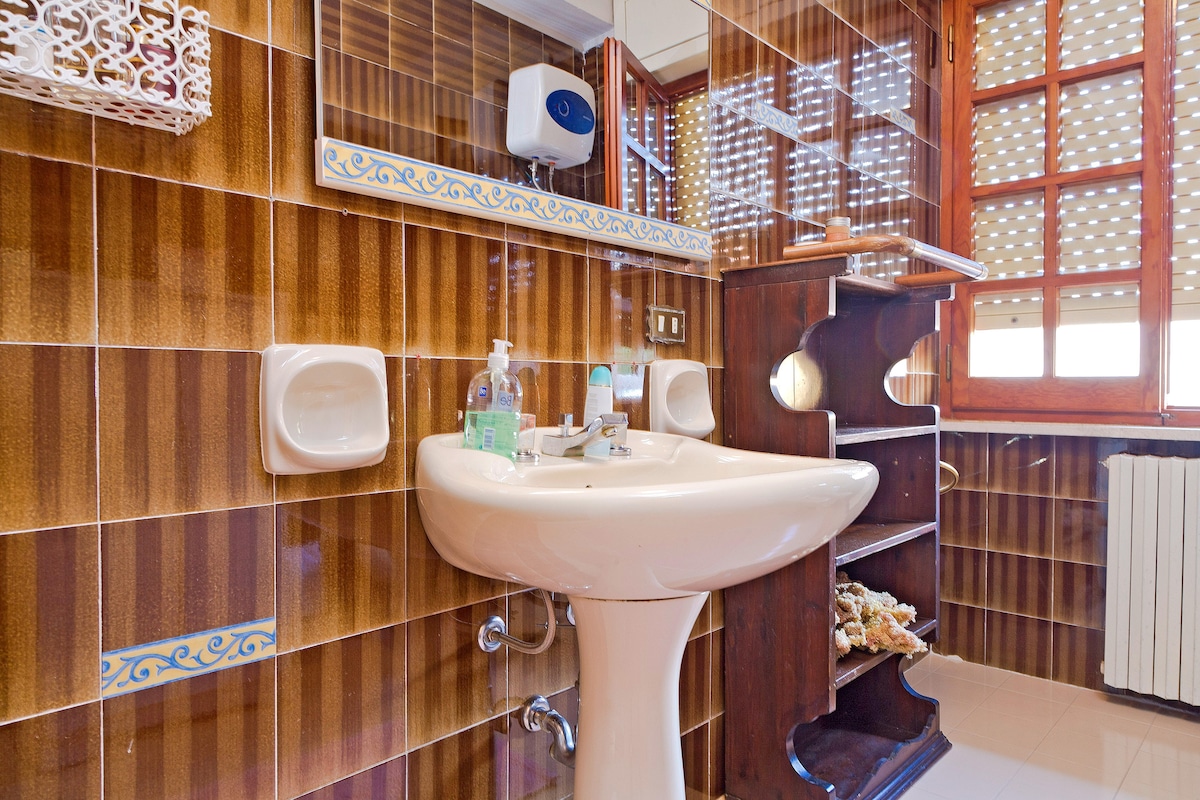 The Italia room is located on the second floor (no elevator) is large spacious with a double bed and two single beds. Suitable for families, it accommodates up to 4 people. It has a private bathroom, but it is not located inside the room, in fact you have to cross the common room to access it. It has a small balcony overlooking Via XX Settembre, one of the main pedestrian streets on the island. Independent air conditioning (hot/cold) and 40" LCD TV.