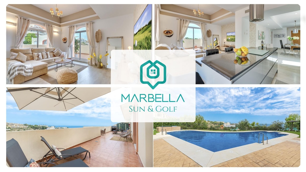 Luxury appartment in Marbella with wonderful views to the Mediterranean and the Mairena hills. This appartment is in a condominium with private pool and private parking. The appartment has 110m2 and comprises two bedrooms and two bathrooms, open kitchen and 50m2 of terraces. It comes with WiFi illimited, two large flat TVs, Netflix, etc. Golf courses within 5km area. Automatic awnings, marble floor and fully equipped kitchen. Dark blinds to cover sunlight if required. Washer and dryer.