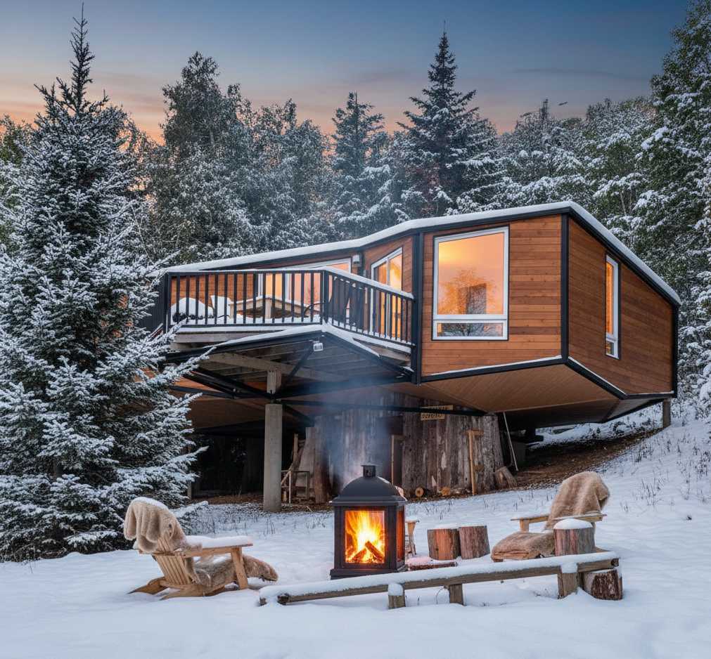 Small Scandinavian chalet for two people ideally located to enjoy the attractions of Charlevoix. It has a thermal circuit (hot tub, sauna, hammam) Very intimate and in the middle of the woods, the view overlooks the majestic river and the mountains in the distance. All the modern equipment is there and the comfort is absolute A/C and outdoor fireplace. The open concept design was designed for an immersive experience in nature: large windows, panoramic shower. Access via a private road at 500 m.