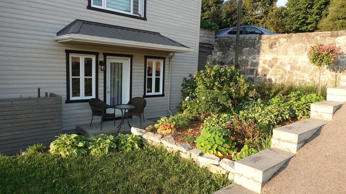 Facing the majestic St. Lawrence River, in a charming village, stands a stunning pink house with unique architecture. Your stay will be a memorable experience, combining art, nature, and tranquility. You will stay in a nice, completely private cottage with a separate entrance. The other part of the house serves as an art gallery and the home of the artist owner, who is discreet and respectful of your privacy. A dome dominates the gallery, offering a sublime view of the river and Charlevoix.