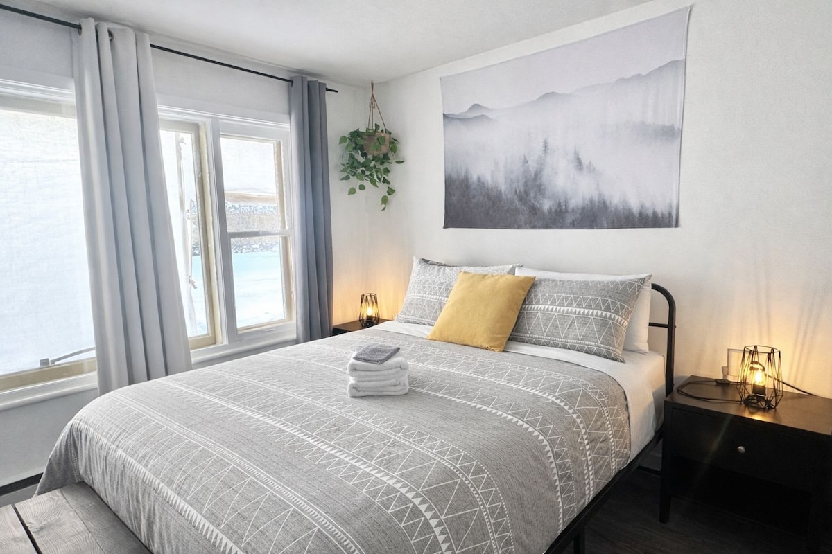 #301110 outdoor lovers Quality at an affordable price Private area Fully equipped kitchen Comfortable mattress Large parking lot Town/nature duo Located in front of a park & lake 10 m from Siberia Spa + 4 hiking trails, breathtaking mountain view Fishing small lake near the mill trail Bike storage (summer) River beach nearby BBQ Foyer Air AC WiFi Prime Rainy Day Games & Books grocery store and SAQ on foot Easy access to old QC by car Taxes Inc.