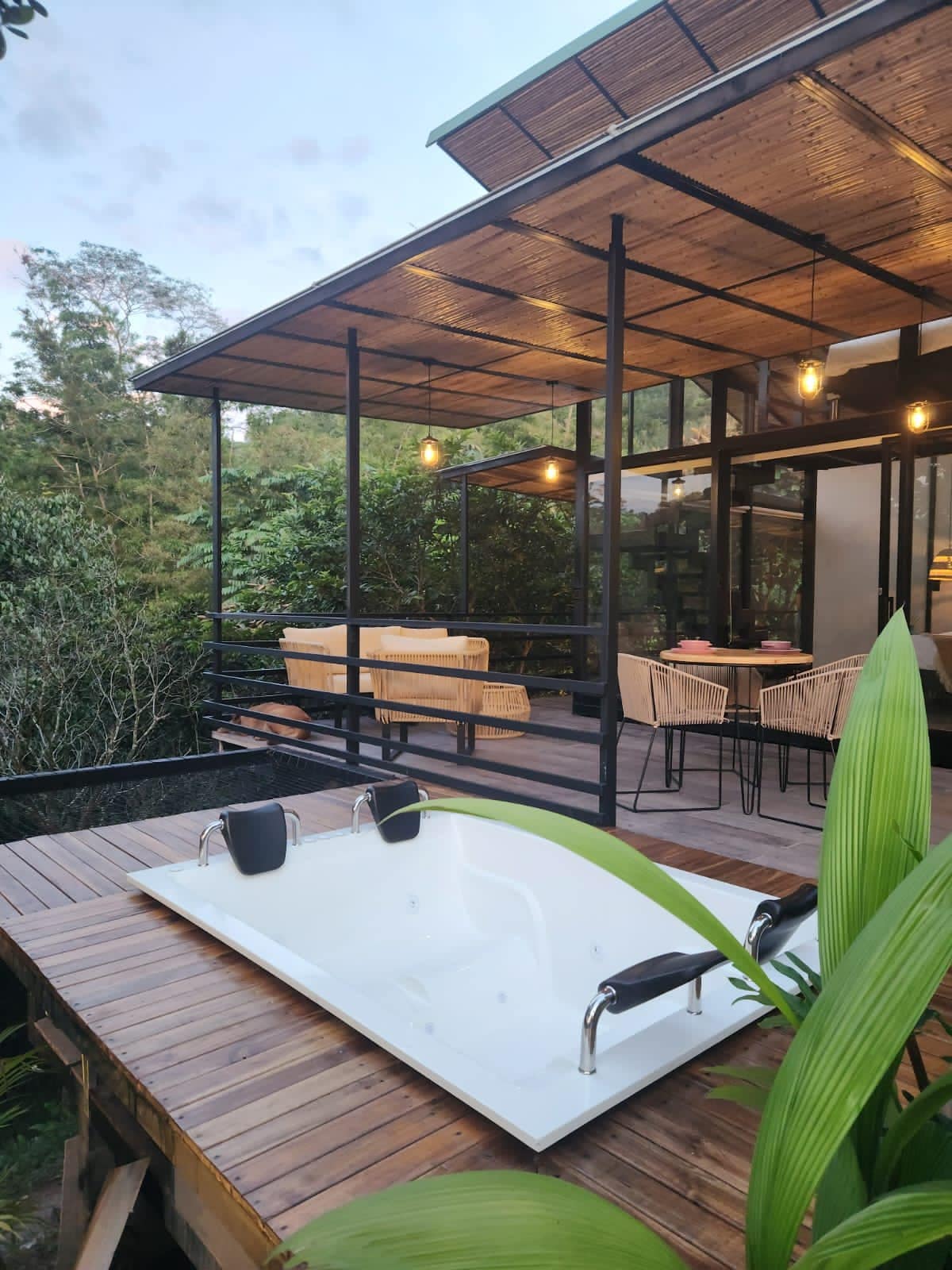 Relájate en este espacio tan tranquilo y elegante. comparte con tu pareja momentos únicos, una cabaña hecha para tus momentos especiales con tu pareja, la cabaña Colibri esta dentro de una Ecofinca en la cual podrás convivir con la Naturaleza, deja que el sonido de las aves te despierten. la cabaña tiene jacuzzi privado