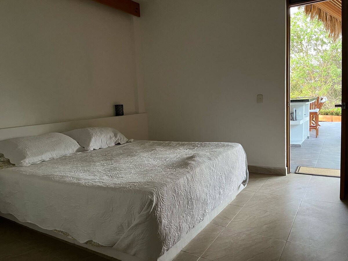 Cabaña campestre privada, ubicada en un Condominio a tan solo diez minutos del centro de Apulo. Cuenta con una habitación con balcón dos camas una doble y una sencilla para 2 o 3 personas, Jacuzzi privado, Wifi, Televisor en la sala y en el dormitorio para su comodidad, Barra de sonido, Barra comedor, Cocina equipada, Cafetera ,Sala exterior con parasol, dos asoleadoras ,Zona BBQ Asador a gas, Parqueadero privado, Se permiten mascotas, Acceso a la Piscina Social