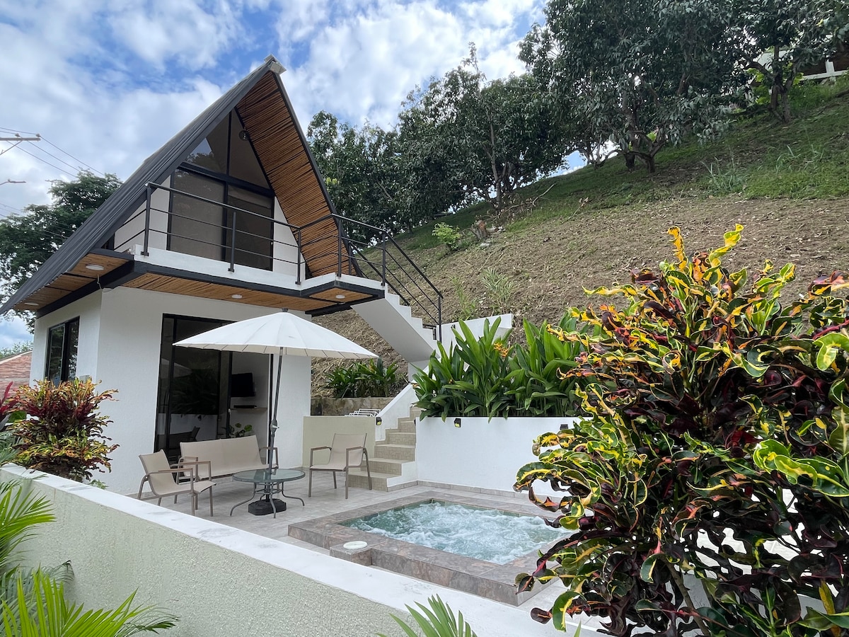 Relájate en este espacio tan tranquilo y elegante. comparte con tu pareja momentos únicos, una cabaña hecha para tus momentos especiales con tu pareja, la cabaña Colibri esta dentro de una Ecofinca en la cual podrás convivir con la Naturaleza, deja que el sonido de las aves te despierten. la cabaña tiene jacuzzi privado