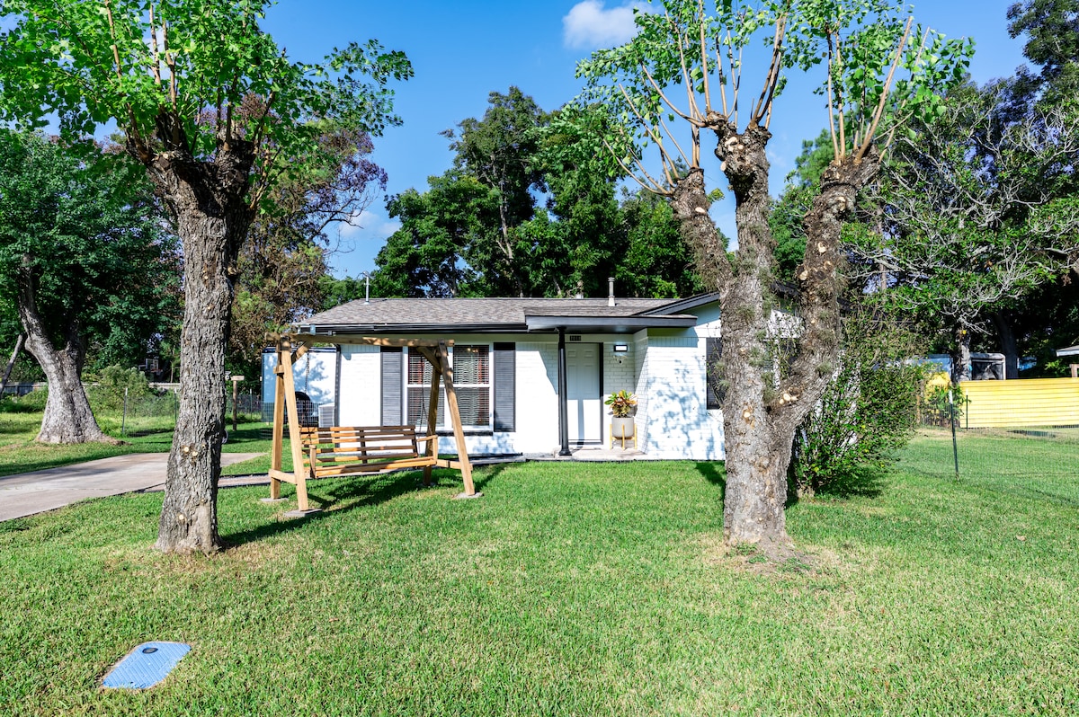 Private, serene & clean guesthouse w/everything you need in a spacious, uncluttered 700 sq ft. • Cleaned by your SuperHost • Fast Wi‑Fi (532 Mbps) • In‑unit washer/dryer • Workspace • Full kitchen w/essentials • Excellent AC/Heat • Cozy couch & recliner • 55" Smart TV with Hulu & Disney+ included • Private bathroom & shower stocked with essentials • Outdoor lighted gardens w/ soothing water features Completely Detached from Main House Modern recessed LED lighting Midway Houston/Galveston