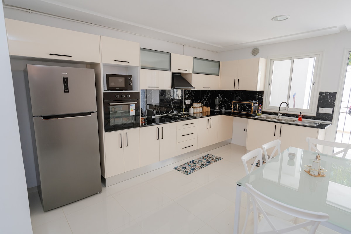 Studio raffiné à deux pas de Carthage, à 8 min de Sidi Bou Saïd et La Marsa, et à 18 min de l’aéroport. Au 1er étage d’une résidence calme, ce logement au style épuré offre un espace optimisé, une cuisine équipée, Wi-Fi rapide et ambiance harmonieuse. Idéal pour télétravail ou escapades. Possibilité de garer gratuitement une voiture devant l’entrée (non couvert).