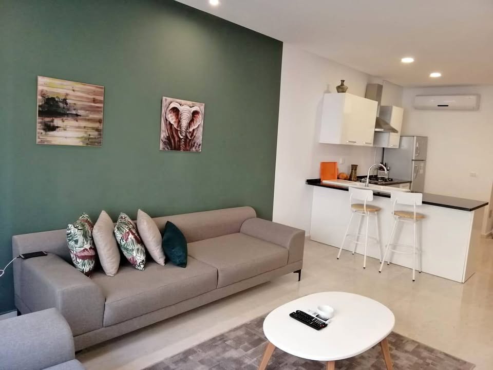 Situé à La Soukra, dans le gouvernorat de Tunis, le S+1 la soukra dispose d'un grand balcon. Cet hébergement se trouve à 7 km de Sidi Bou Saïd, à 11 km de Tunis et à 5 km de Gammarth. En 10 minutes en voiture vous êtes à la Marsa plage. L'aéroport de Tunis, le plus proche, est implanté à 6 km. Cet appartement comprend une chambre, un grand salon avec une télévision à écran plat et 2 salles. Sa cuisine est bien équipée. La résidence est sécurisée avec des caméras de surveillance et des gardiens.