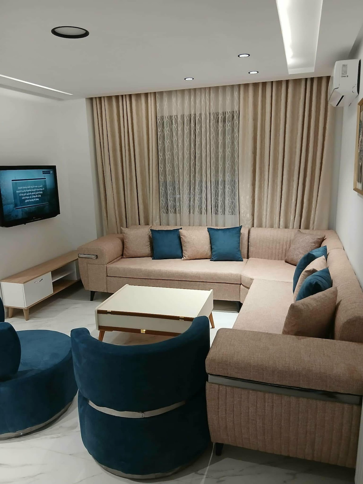 Modern and elegant apartment ideally located in El Marsa, Ain Zaghouan Nord. Just steps from Carrefour La Marsa and surrounded by luxury restaurants, cafés, bars, and popular nightclubs. This vibrant area is one of the most convenient and upscale neighborhoods in Tunis. Close to all essential services and minutes from La Marsa, Gammarth, and Sidi Bou Saïd. Perfect for guests seeking comfort, style, and the best of city life in a prime location.