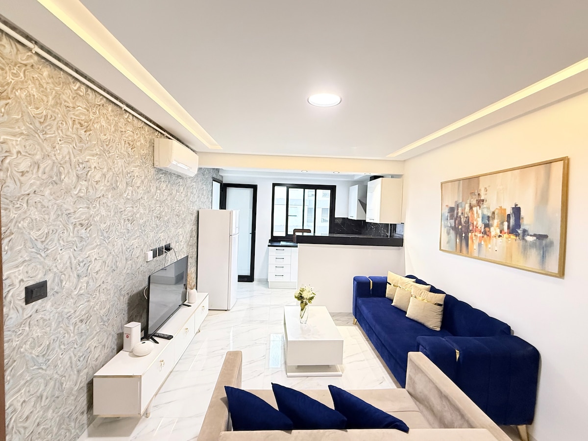 Détendez vous dans ce logement calme et cosy, luxueusement équipé et avec un décor harmonieux assurant un séjour agréable. L’appartement est situé dans une zone résidentielle calme, comprend un salon avec un canapé-lit , une chambre à coucher avec balcon et une Kitchenette bien équipée. 📍Niché à proximité de toutes les commodités: Carrefour, restaurants, cafés, lounges, salle de sport, pharmacie… L’aéroport de Tunis Carthage est à 5 minutes.