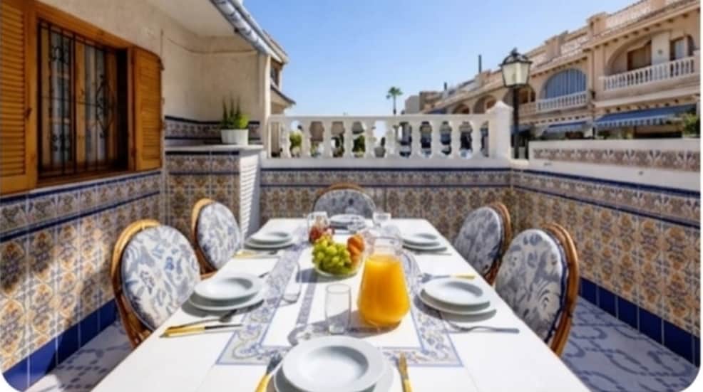 Härlig etagevåning 100 meter från blue flag Beach La Mata. Lägenheten är på 90 kvm i två plan. Den privata terassen är på 35 kvm. Balkongen är på 12 kvm. Totalt 137 kvm. Lägenheten ligger två trappor upp utan hiss. Gratis wi-fi. Till TV-apparaten finns det en Chromecast så ni kan streama från valfria appar i er smart phone, t.ex. Netflix, HBO. Vi har två AC utrustade med myntbox. 10€ till AC ingår i priset. Poolen är stängd för siesta mellan 14:00-17:00 Åldersgräns att hyra är minimum 25 år.