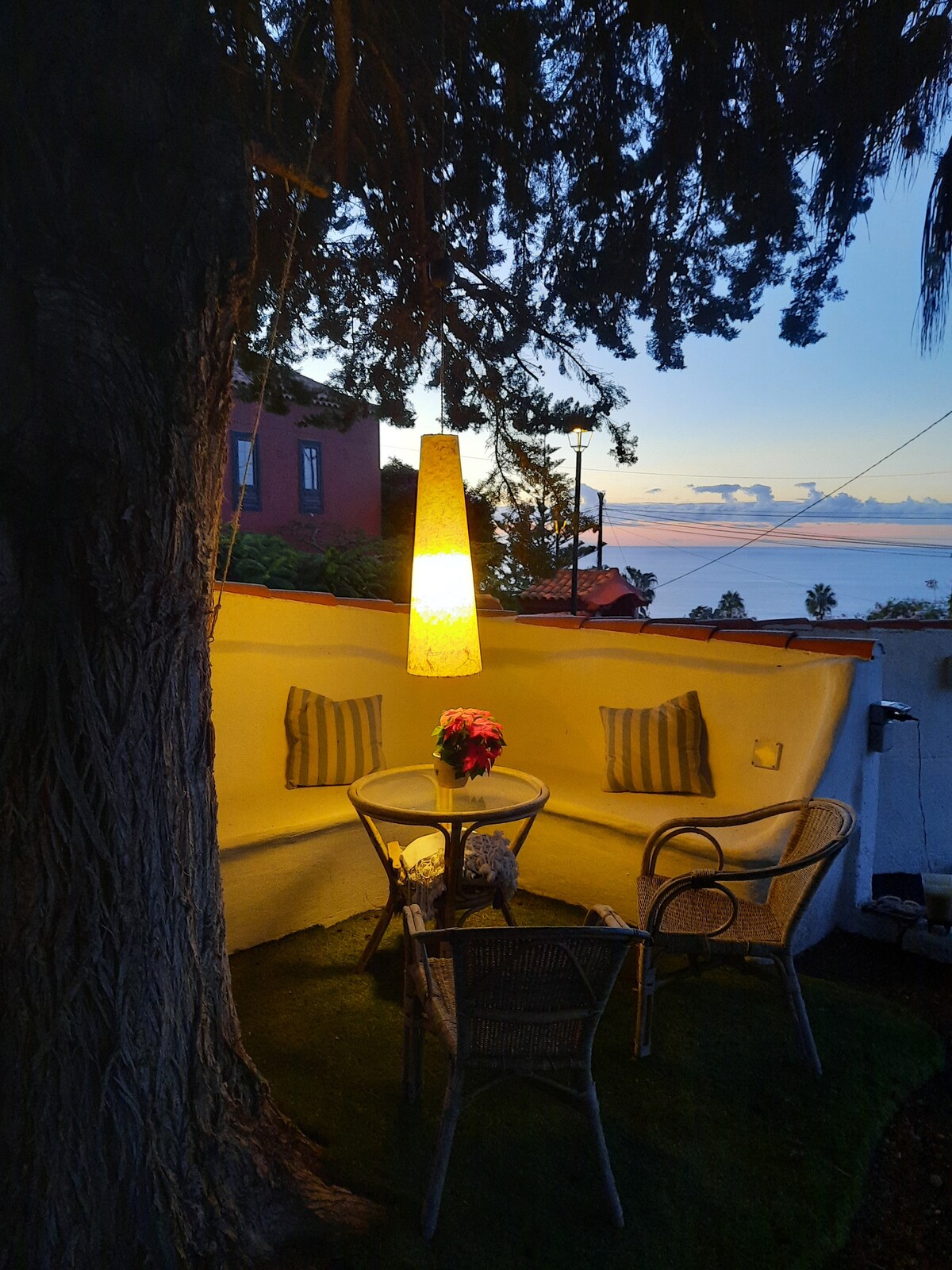 Reformado y elegante apartamento con vistas al mar. Acogedor y romántico. Dotado con todas las comodidades; Equipo de música con USB y Bluetooth, Televisión de 43", NETFLIX, Disney+ y Satélite. Terraza privada con bonito porche perfecto para disfrutar de una velada a la luz de las velas, también pequeño y coqueto jardín también privado. Piscina comunitaria a tan solo 10 pasos, con preciosas vistas al mar y al Puerto de la Cruz. GARANTIZAMOS LIMPIEZA, HIGIENIZACIÓN Y CONFORT.