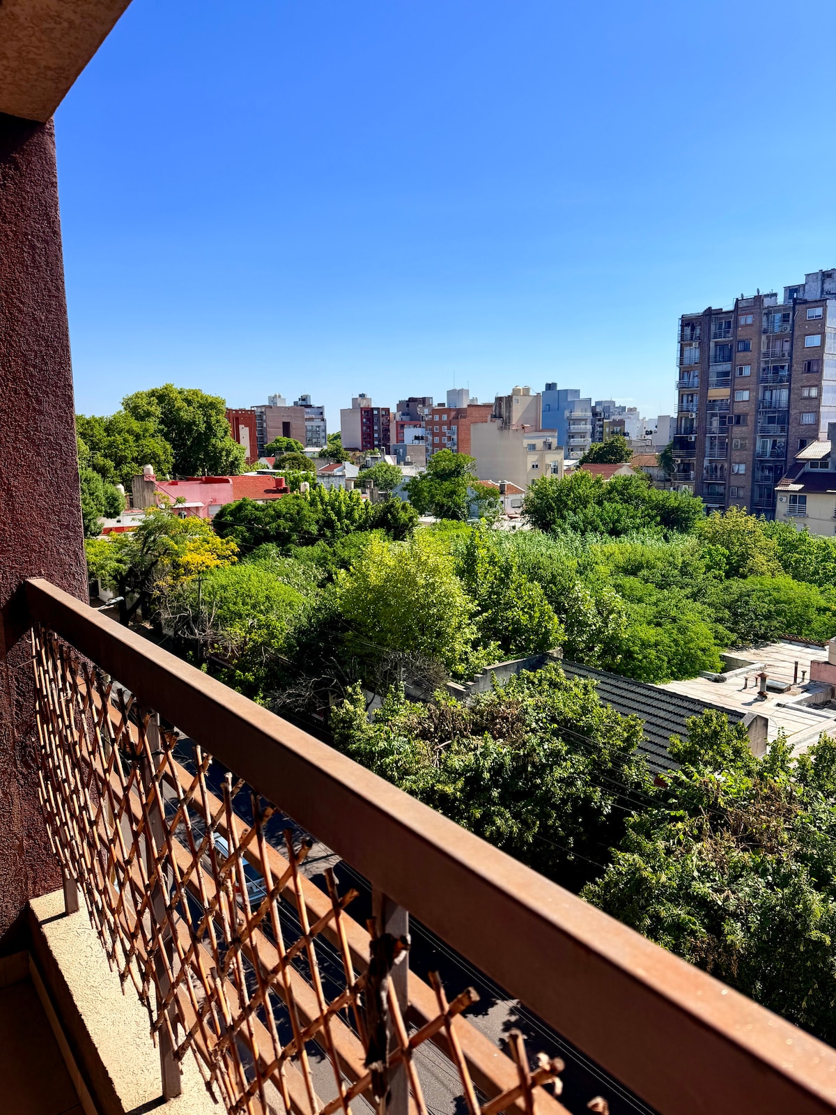 Luminoso monoambiente donde el cálido atardecer escapa por la ventana. Descansa en este tranquilo y hermoso departamento. Sábanas y toallas calidad hotelera, shampoo, acondicionador y jabon liquido para el cuerpo. Equipado con electrodomésticos, aire acondicionado, TV con cable y wifi, secador de pelo, luz de emergencia. A una cuadra del área de servicios con restaurantes, cafeterías, panadería p/ celiacos y veganos y transporte público.