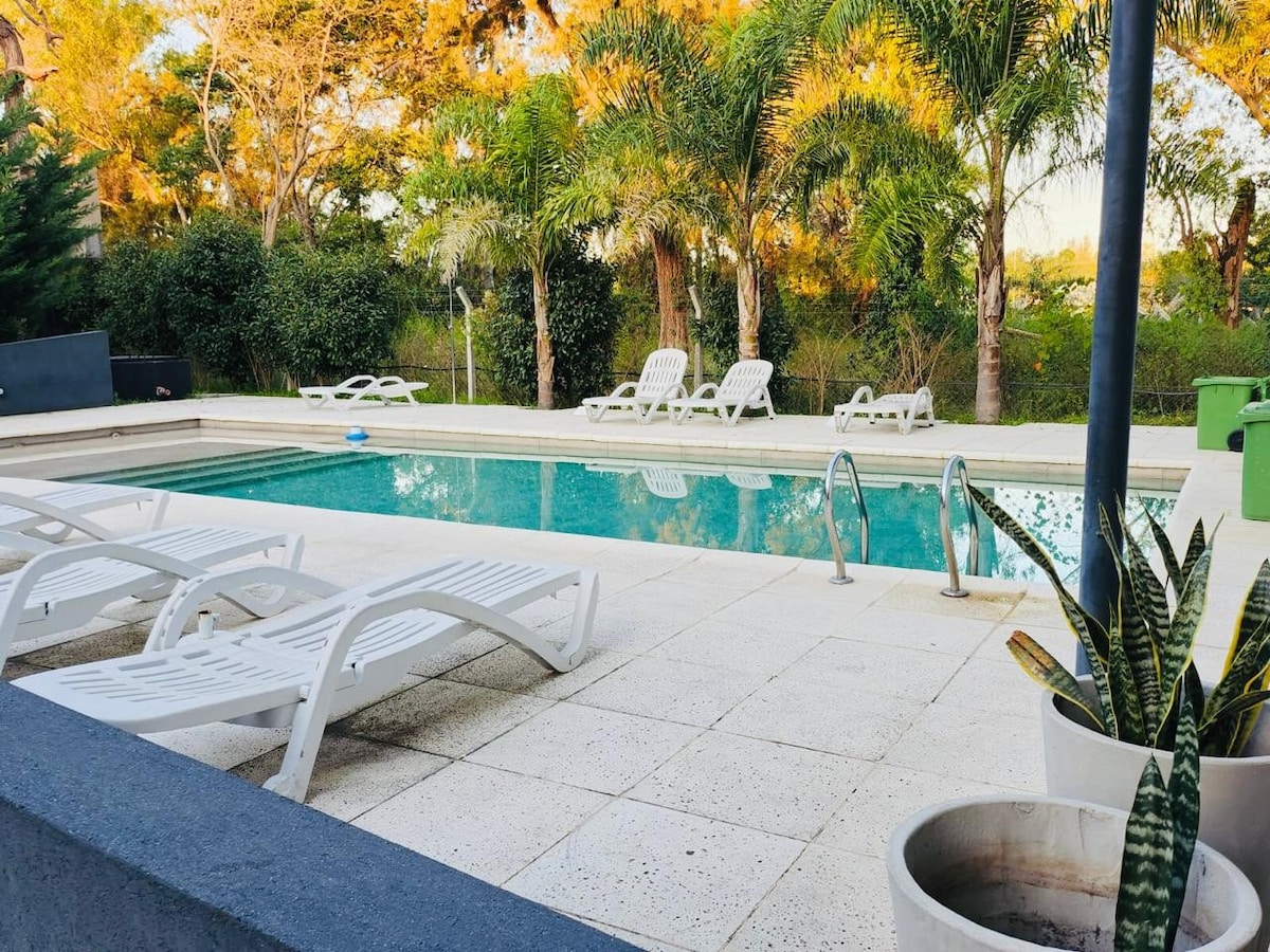 Relájate en este alojamiento único y tranquilo. Barrio cerrado con monitoreado con personal de vigilancia. A solo 10 min. del Aeropuerto Int. de Ezeiza, a 500 metros. de los shoppings, donde podrás disfrutar de Cine, Teatros, Patio de comidas, Restaurantes de Categoría, Parrillas Argentinas, y Tiendas de todo tipo. A 15/20 min. de Pueblos Tradicionales de la Provincia de Buenos Aires. Servicios Adicionales: Transfer In/Out AirPort, City Tour, Día de Campo, Cambió de Divisas.