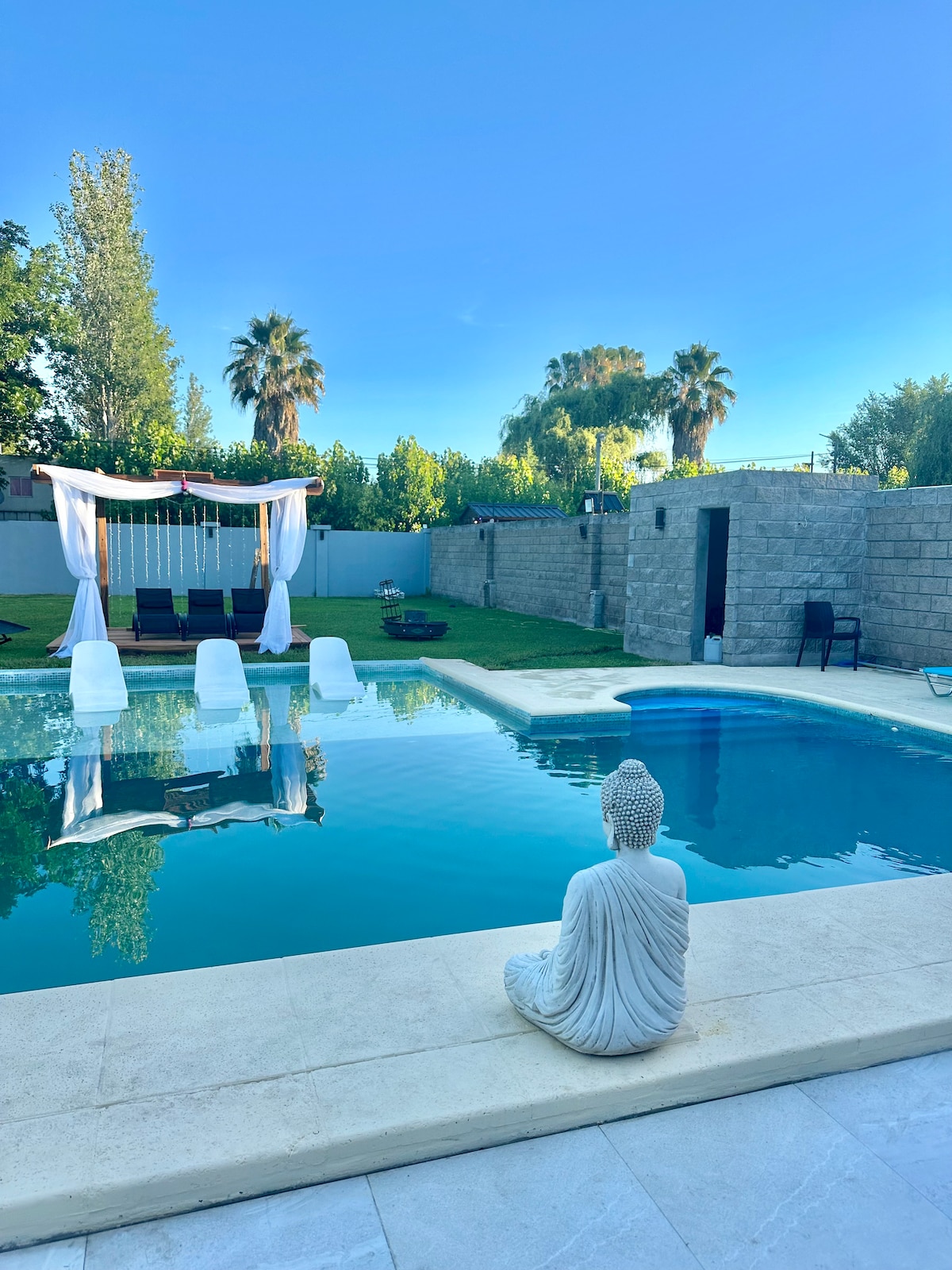Relajate con toda la familia en este tranquilo alojamiento. Es ideal para disfrutar unos días afuera de la ciudad, y a tan solo 45 minutos de Buenos Aires. Podes venir con tus mascotas sin miedo a que se escapen ya que está todo rodeado de un cerco, hacer asados e invitar a tus amigos y familiares a pasar un hermoso día en la pileta y con atardeceres espectaculares. A tan solo 10 minutos de encuentra el centro de canning con el shopping las Toscas, veni a disfrutarlo!