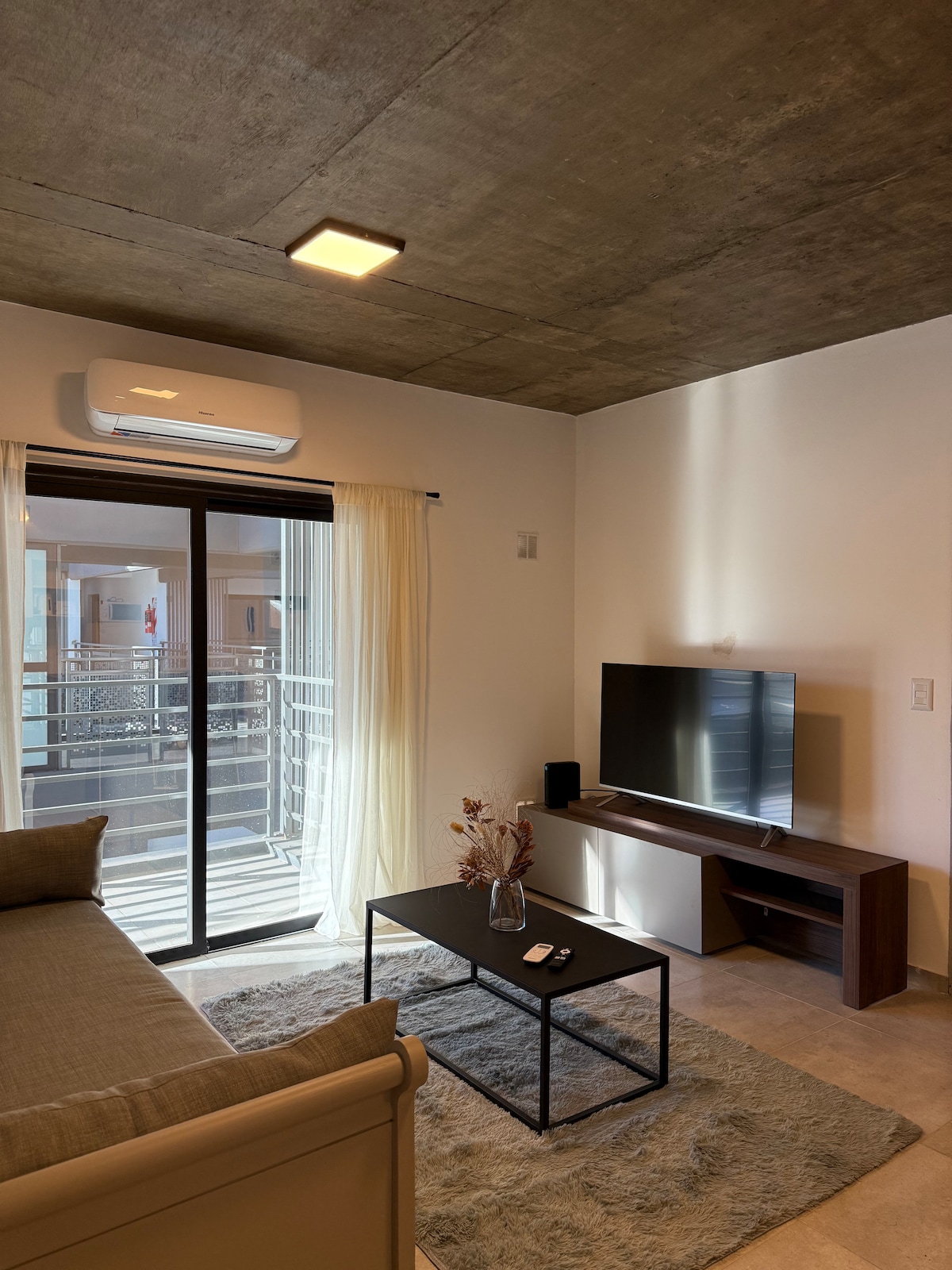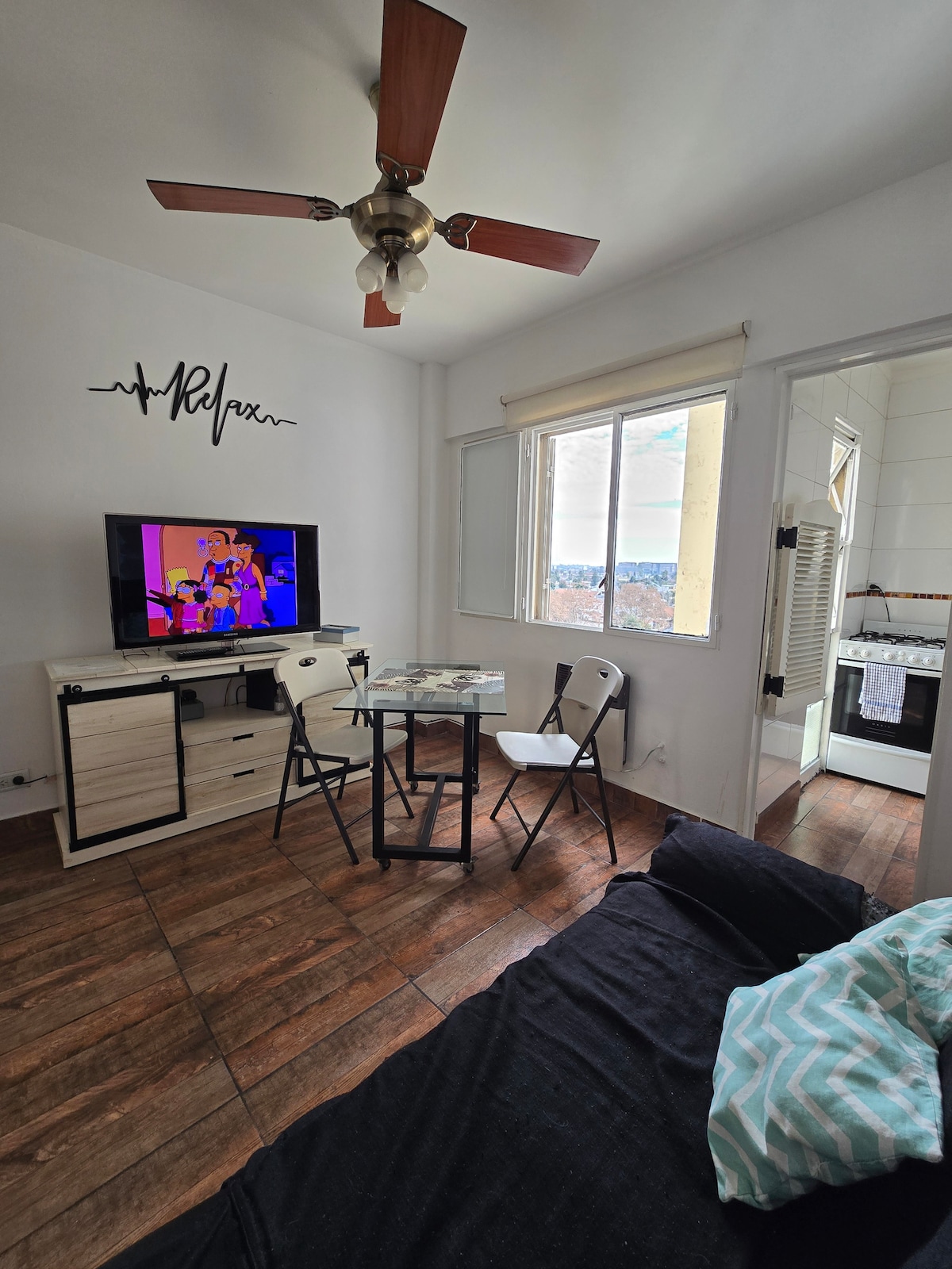 Disfrutá de este moderno loft en el 7º piso con balcón al frente, jardín vertical y barra para relajarte con vistas abiertas a la ciudad. Luminoso y totalmente equipado, cuenta con dos Smart TV (living y dormitorio), placard de pared con cajonera y perchero, cocina completa con lavarropas y WiFi de alta velocidad. Diseñado con estilo y confort, es ideal para estadías de trabajo, parejas o viajeros que buscan una experiencia única en la ciudad.