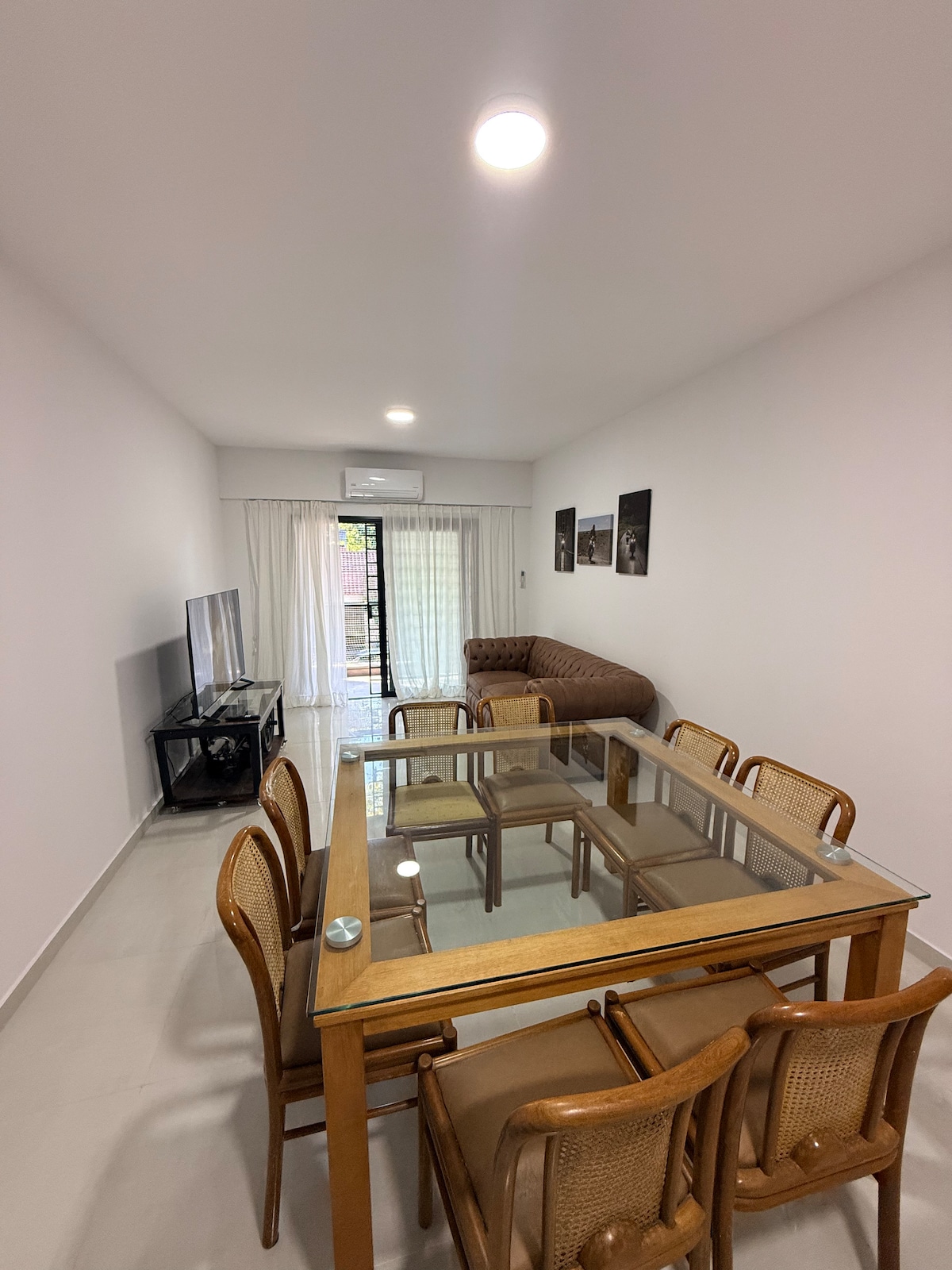 Casa amplia, luminosa y totalmente equipada, con gran parque privado ideal para desconectar a minutos de la ciudad. Living integrado, cocina completa y galería con parrilla para disfrutar en grupo todo el año. Ambientes cómodos y funcionales que invitan a relajarse y compartir sin apuro. El jardín arbolado brinda privacidad y un entorno verde perfecto para descansar, leer o comer al aire libre. Ideal para parejas, familias o grupos.