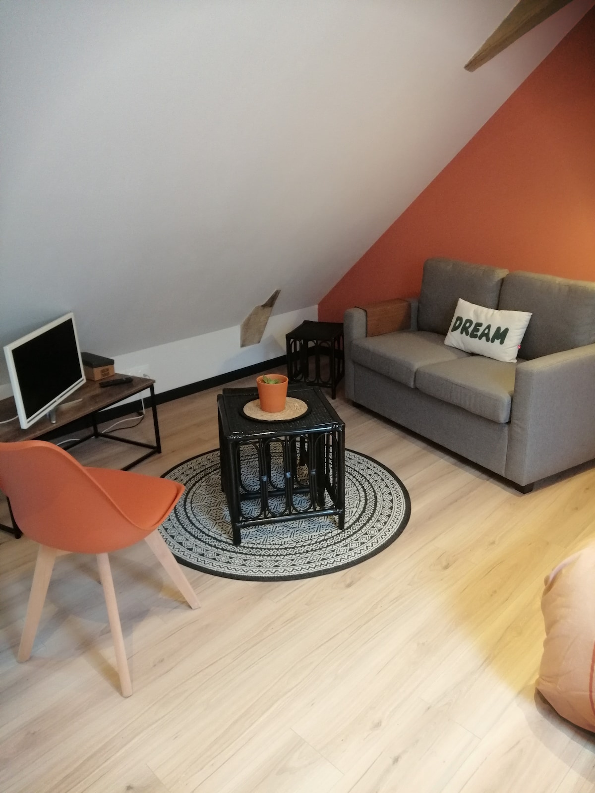 Charmante maisonnette de plain-pied, cour privative, local vélo, confort & tranquillité 🌿 Le logement Vous disposerez d’une grande pièce lumineuse avec un coin salon (canapé convertible) et un lit double 160/200 cm confortable. La cuisine équipée vous permet de cuisiner facilement sur place. 🚲 Local vélo sécurisé avec prises électriques, parfait pour les cyclistes ! 🔌 Cour privative fermée, calme et agréable, avec prise extérieure . 🛏️ Draps et serviettes fournis 📶 Wi-Fi