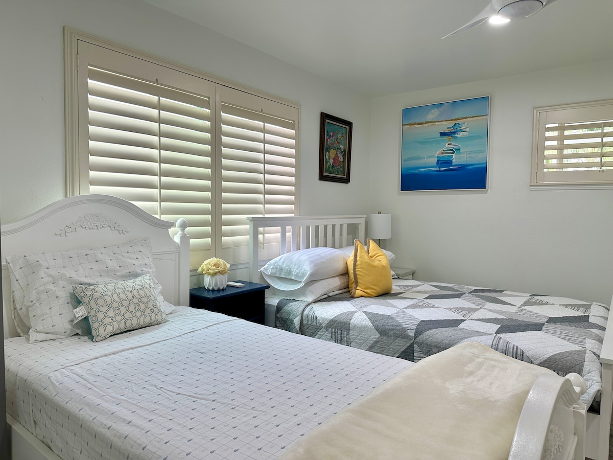 Take a break and unwind at our coastal-inspired oasis. Enjoy a relaxed cabana vibe with great natural light in a quiet neighborhood. This newly built private suite has all new appliances, furniture, and fixtures. You'll have everything you need to make you feel right at home with a fully functioning kitchen, en-suite bathroom and stacked washer/dryer. It includes a comfortable workspace with charging ports & a reclining loveseat along with a brand new gel memory foam queen bed.