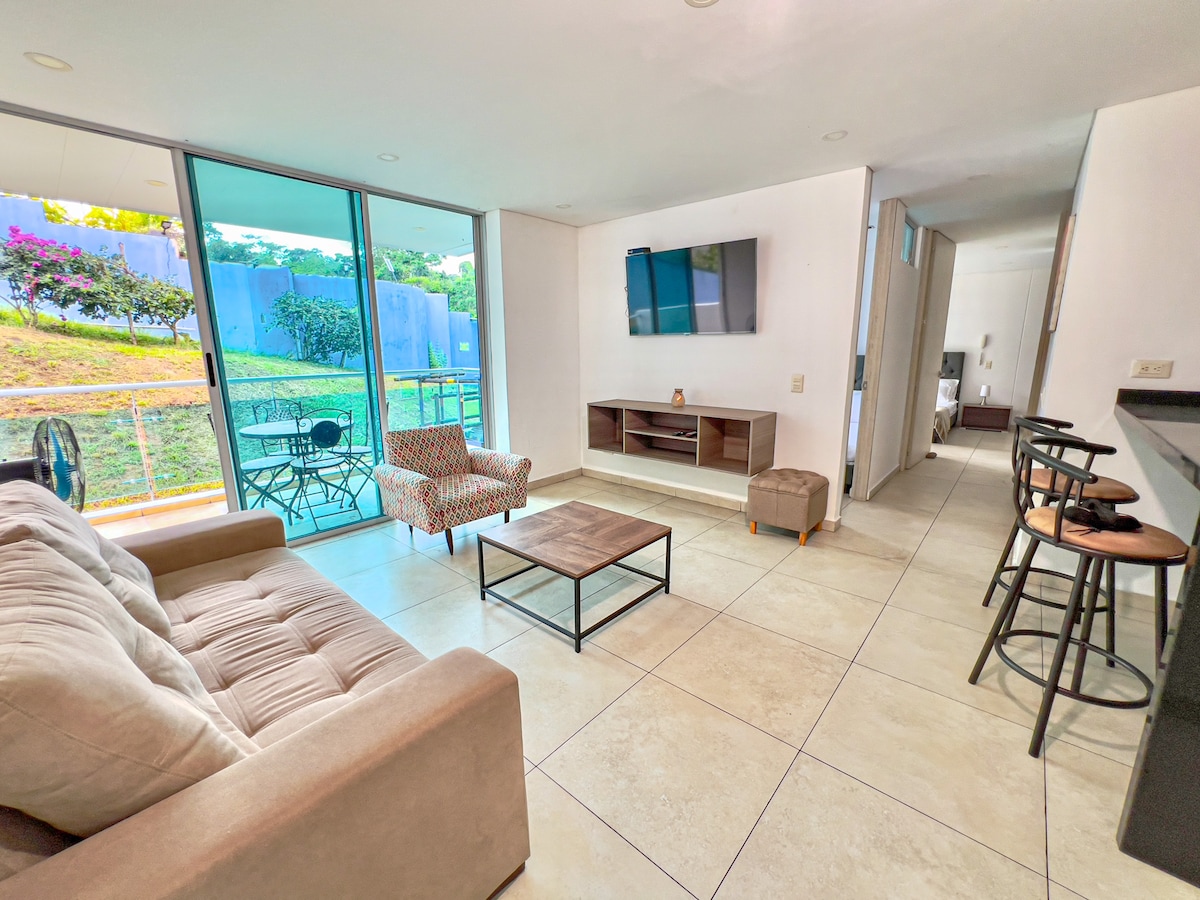 Welcome to a modern, bright apartment with direct mountain views. Enjoy large windows, a comfortable lounge sofa, a fully equipped kitchen, and a bedroom that opens onto the garden and surrounding greenery. The space is perfect for relaxing, working remotely, or enjoying a warm-weather weekend getaway. Just a few steps away, you’ll find the community pool with beautiful mountain views and wide green areas ideal for unwinding. Only 10 minutes from Anapoima, with fully paved access.
