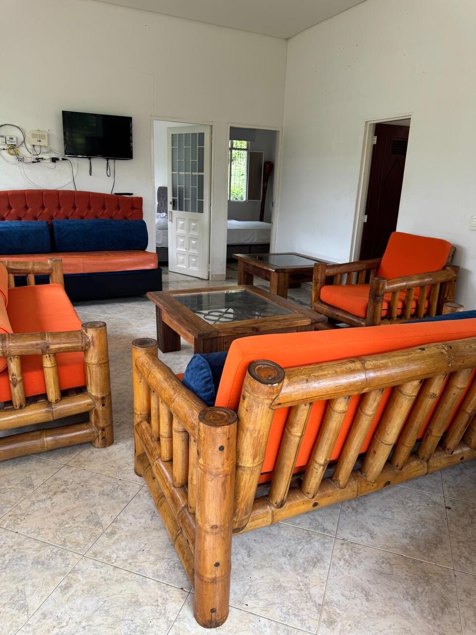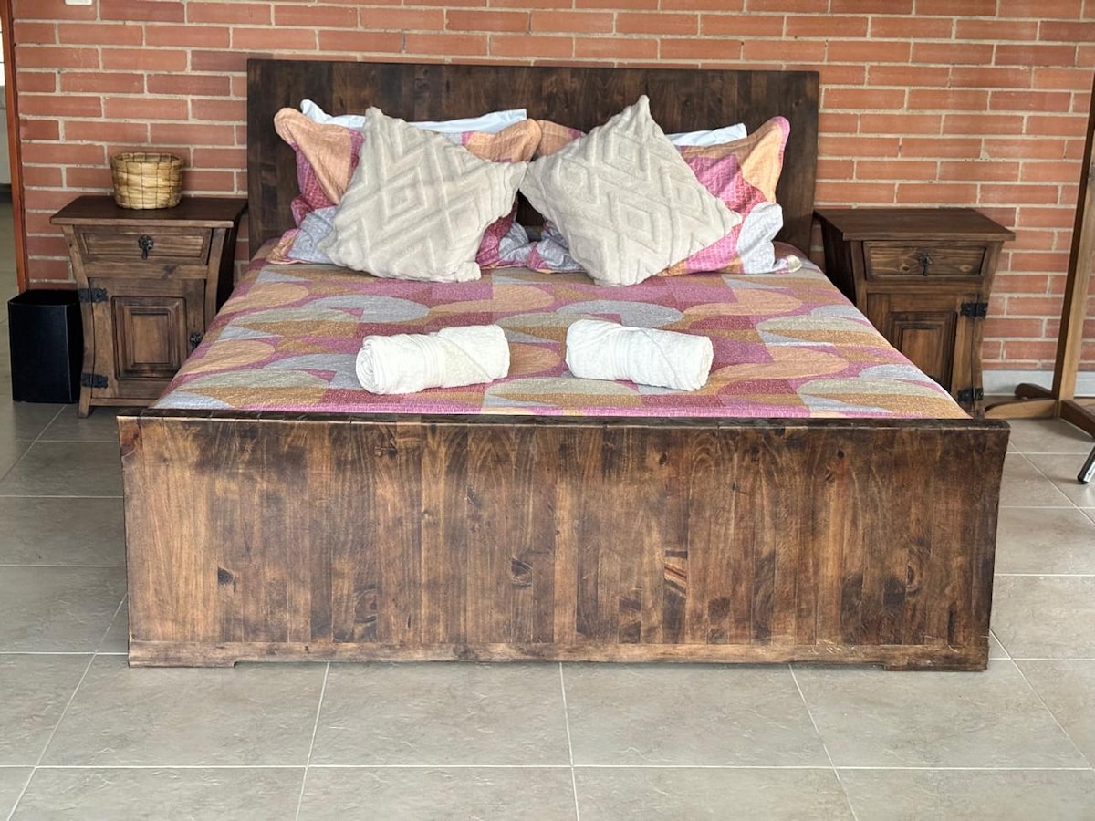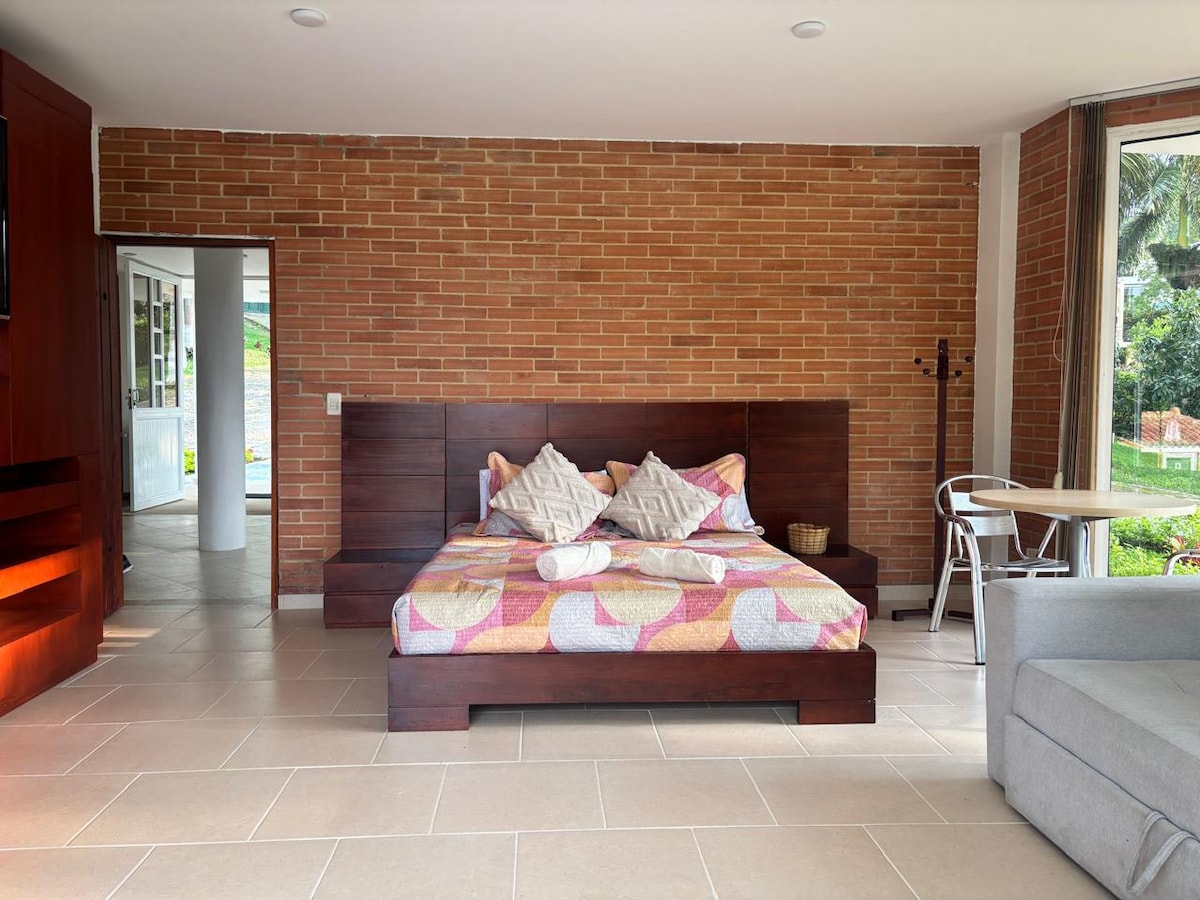 Suite Finca Las Palmeras: Vista a la Piscina y Relax Disfruta de privacidad total en esta suite con baño privado y acceso directo a la piscina. TU ESPACIO: - Cama Queen + Sofá-cama (4 pax). - Baño interno privado. - Vista premium a la piscina y jardín. ZONAS COMPARTIDAS: - Piscina, Kiosco y BBQ. - Cocina equipada y Wifi. - Senderos naturales y zonas verdes. - Zona de Coworking DONDE: - La Mesa, a 10 min del pueblo. ¡El equilibrio perfecto entre campo y confort! Reserva ahora.