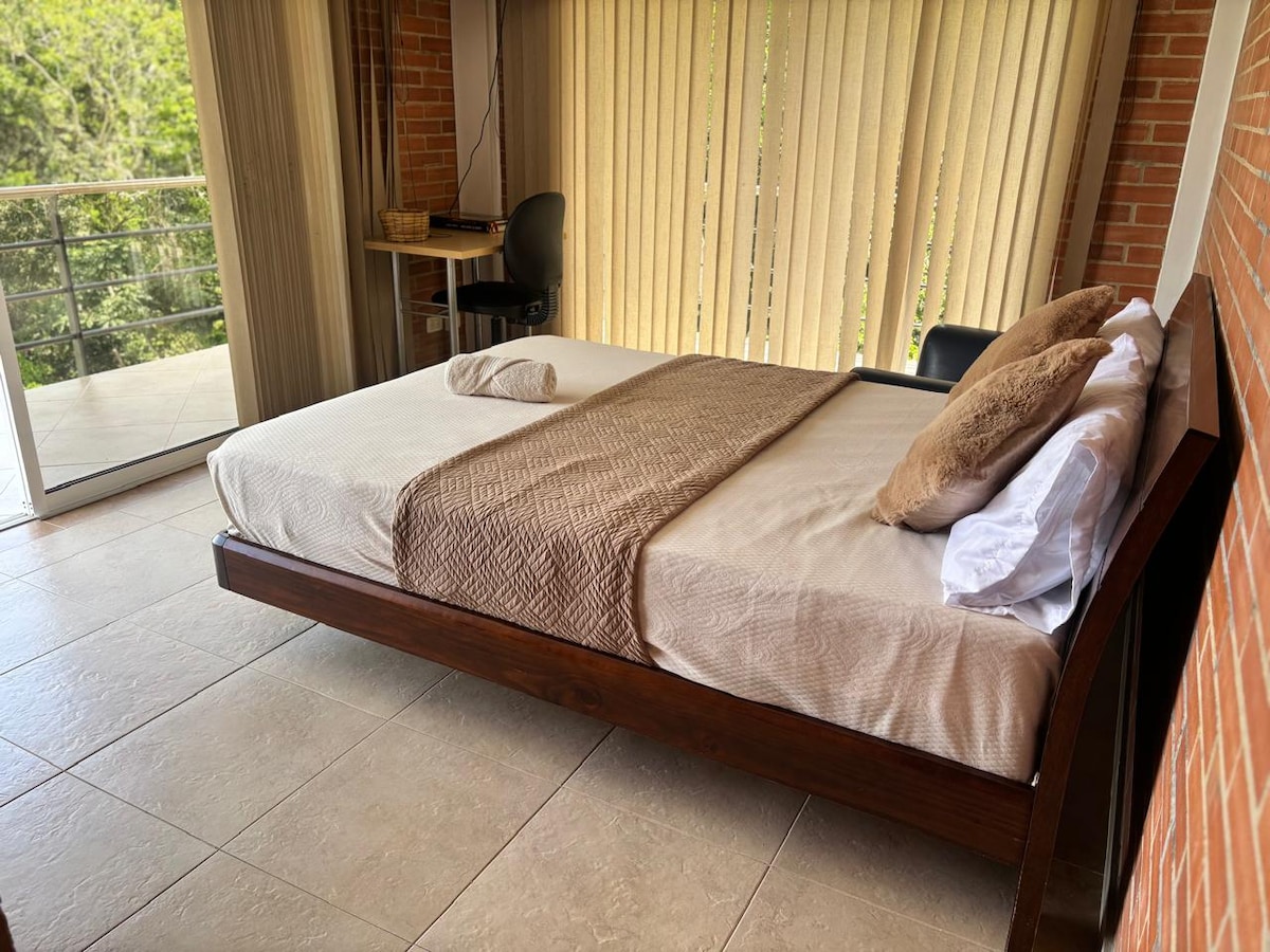 Suite 3: Luz Natural y Balcón con vista premium Habitación destacada por su excelente iluminación y balcón independiente con vista al jardín. TU ESPACIO: Cama doble con lencería de calidad. Balcón privado con puerta corrediza de cristal. Zona de coworking con escritorio, silla y wifi. Baño privado moderno con acabados en piedra. Zonas Comunes: Piscina, zona BBQ y kiosco social. Cocina equipada. Senderos y zonas verdes. Paz y confort en La Mesa. ¡Reserva ahora!.