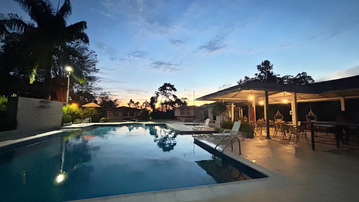 Complejo ecoturístico con vistas a la montaña, jardines con hermosa vegetación y hermosos atardeceres que te ayudaran a descansar y conectar con la Naturaleza. Ofrece cocina multifuncional, salón común, terraza, zona de BBQ, áreas de descanso y meditación, 2 piscinas, 1 jacuzzi, salón de juegos, parqueadero privado gratis, wifi 24 horas y servicio de restaurante. Todas las unidades cuentan con TVp/plana, 2 habitaciones estilo apto, baño privado y cocina equipada con horno, estufa y cafetera.