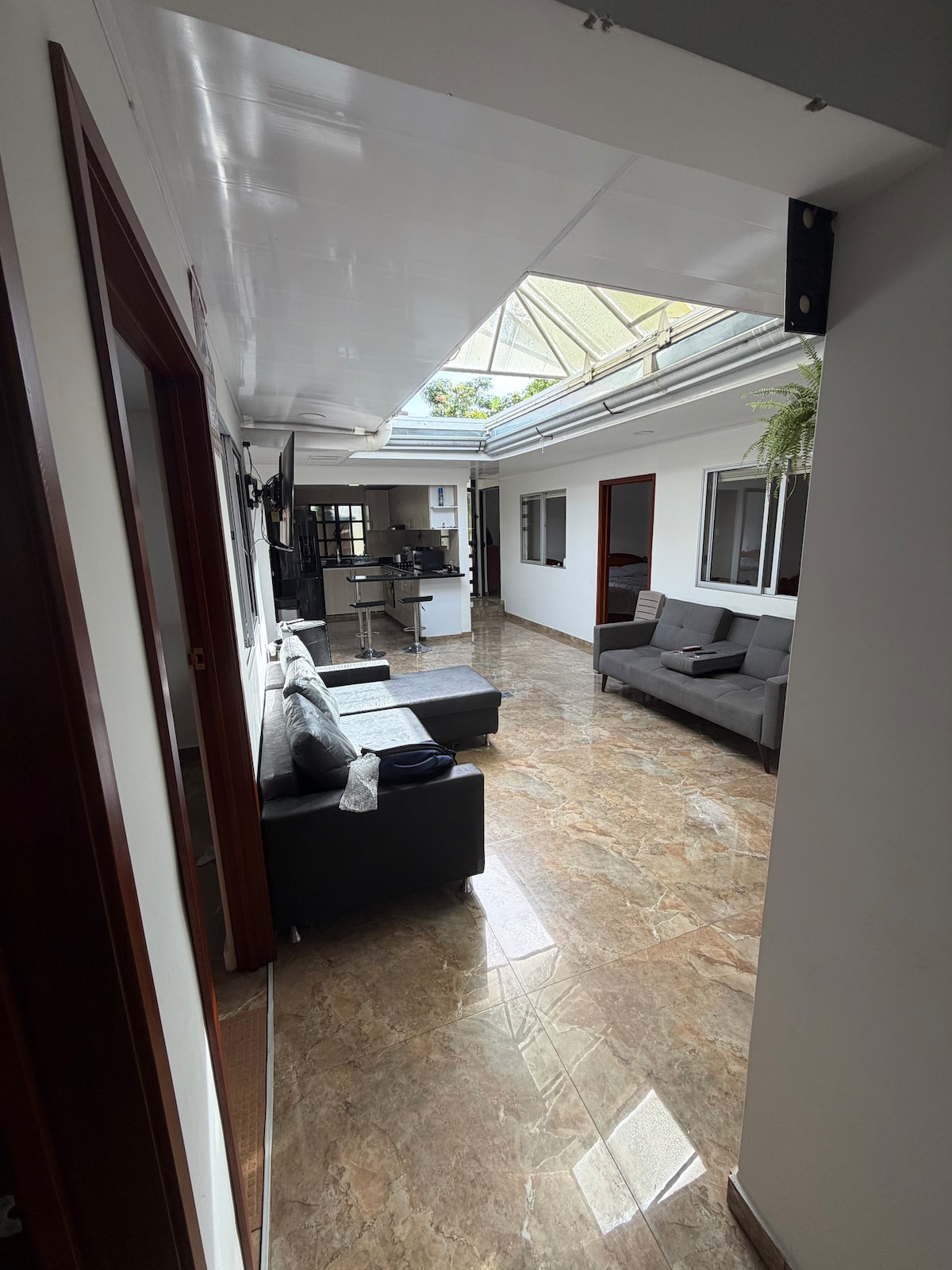 Disfrute de una hermosa vista de la cordillera central y los valles colombianos. ¡Ahora con Wifi banda ancha! (hasta 4 dispositivos, 60 Mbps) La propiedad está rodeada de hermosos jardines y la iluminación de la casa es perfecta (luz del sol durante el día y lámparas bien distribuidas por la noche). La villa cuenta con cocina integral, sala, comedor, piscina completamente privada, equipo de sonido y camas con sábanas. NO contamos con servicio de TV. Registro Nacional de Turismo No. 94066