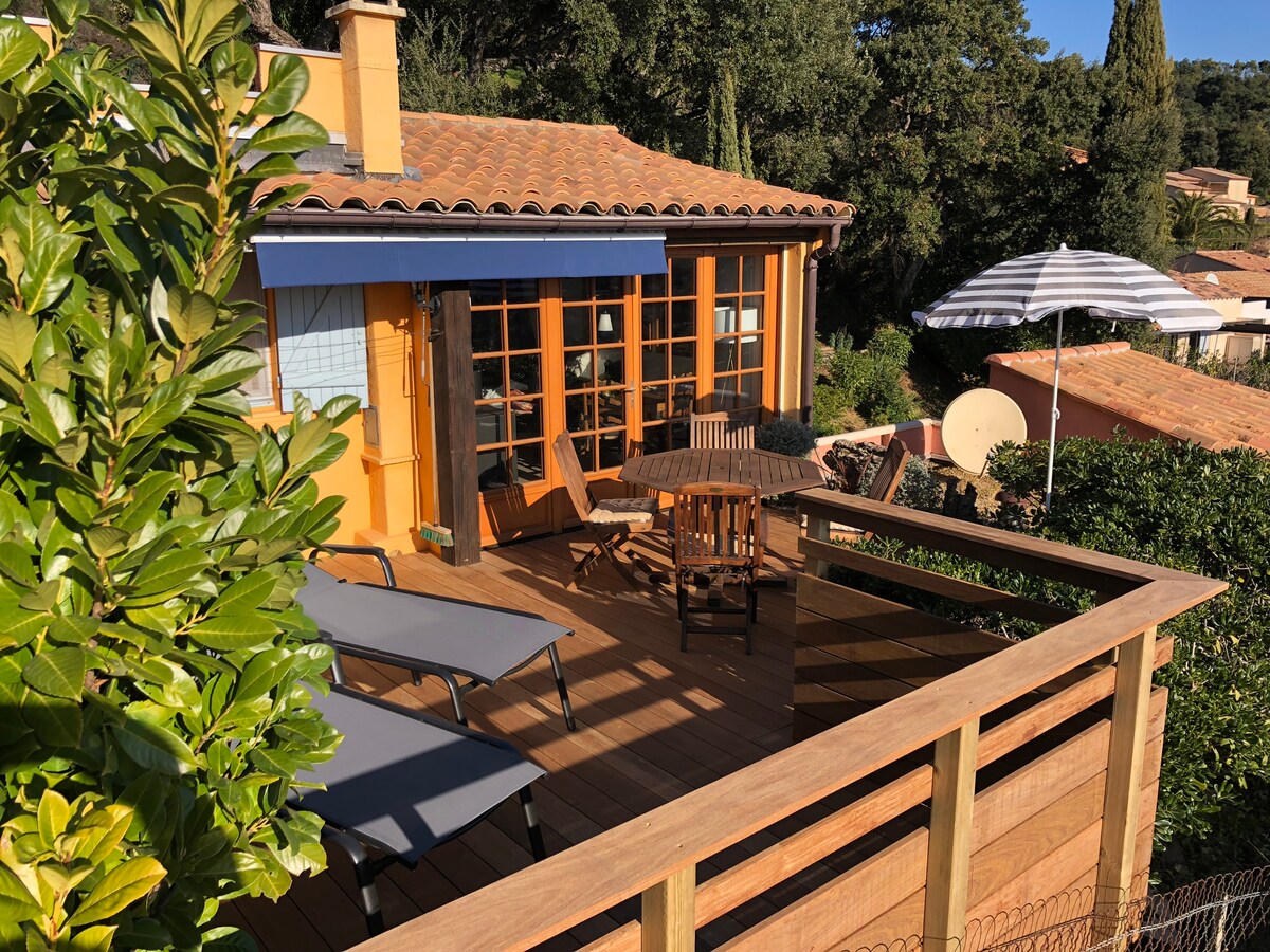 Charmante maison individuelle sur 1600 m2 de terrain dans la colline, avec une superbe vue sur la baie de Cavalaire, à 15km de Saint Tropez. 3 chambres climatisées , 1 salle d'eau, 1 wc à l'étage et au rdc 1 wc, 1 séjour cuisine donnant sur la terrasse. Piscine privée pouvant être chauffée avec un supplément (de mai à octobre) volet roulant électrique.