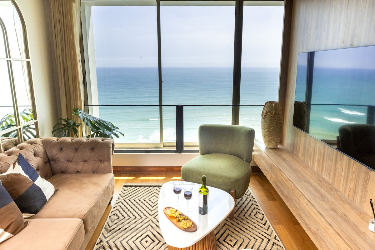 Enjoy Lima from a unique duplex apartment with 2 bedrooms both equipped with queen size beds each one with its bathroom, surrounded by wonderful views of the boardwalk, lighthouse and Lima Bay. It will make your stay a perfect trip. Dine in the best restaurants in Peru, have a coffee with a spectacular view or walk around eating ice cream in a safe area. An experience you will love.